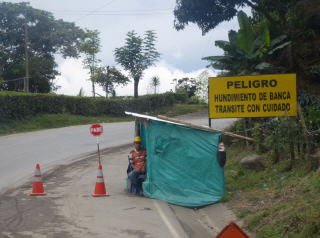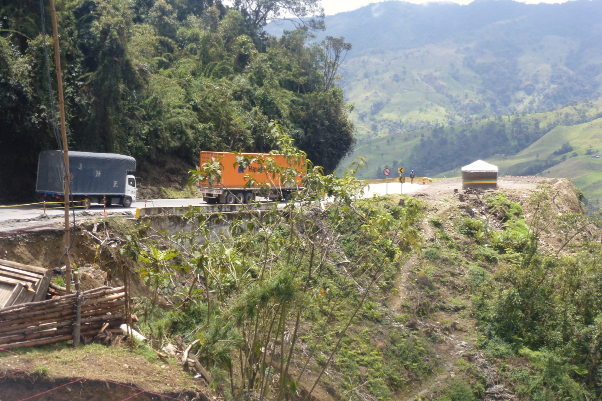 Umfahren die Grossstadt ‚Cali‘: zweitgrösste Stadt Kolumbiens, Salsa-Metropole, Heimat des Cali-Kartells (Kokain), daher viel Armut und Gewalt. Die Bevölkerung verabscheut Drogen. In ‚Palmira‘ stossen wir wieder auf die ‚Panamericana 25‘. Hier teilt sich die Strasse in die ‚40‘ und wir nehmen die ‚50‘ Richtung Bogota. Heute kommen wir zügig voran. Vor ‚Armenia‘, ganz in der Nähe des Flugplatzes soll die luxuriöse, kleine Hotelanlage ‚Hacienda Bambusa‘ sein. Nach einigem herumirren zwischen Kaffeeplantagen finden wir diese: geschlossen! Die Enttäuschung ist gross, denn Bigi hat sich schon auf einen gemütlichen Nachmittag am Swimmingpool gefreut. Kaspar ärgert sich: so ein Scheiss! Also bleibt uns nichts anderes übrig als weiter zu fahren. Auf der Höhe der Dörfer ‚Salento‘ und ‚Filandia‘ stoppen wir bei der Service-Station. Hier in Kolumbien zahlen wir sehr oft Strassengebühren (umgerechnet ein paar Franken). Nun werden wir plötzlich oft als Kategorie 2 zu hoch eingestuft. Eine Diskussion an den Zahlstellen lohnt sich jedoch nicht.