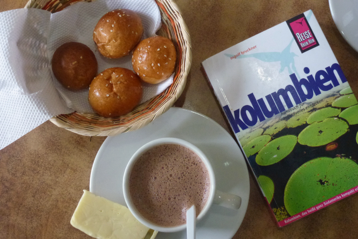 Die letzten paar Kilometer nach ‚Zipaquira‘. Parkieren beim archäologischen Museum (brauchen fast den ganzen Parkplatz), denn der ‚Parque de la Sal‘ öffnet erst um 9 Uhr. Bummeln zum Hauptplatz und Kaspar trinkt das nationale Frühstückgetränk ‚chocolate con queso‘ (Trinkschokolade mit einer Scheibe Käse). Schmeckt echt gut! Bummeln noch ein wenig durch die Fussgängerzone.