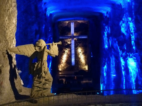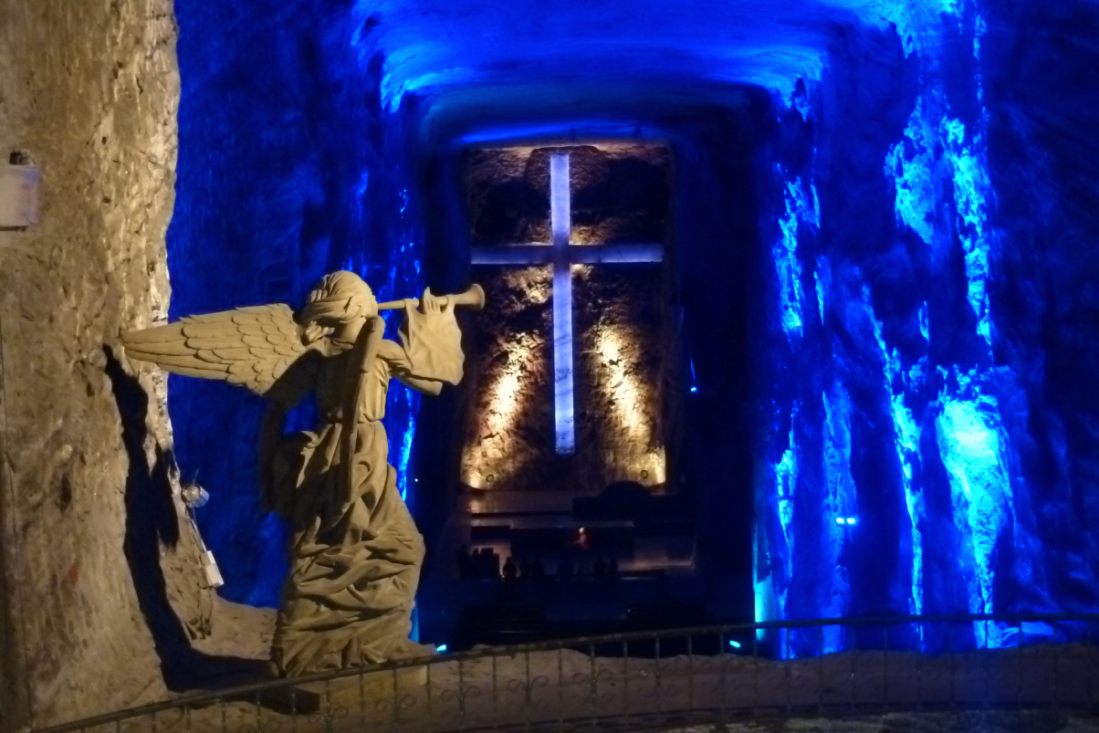 Bevor man in 180m Tiefe die Kathedrale erreicht, schreiten wir den Kreuzweg mit seinen 14 Stationen ab. Sehr beeindruckend. Ein Engel begrüsst uns mit der Inschrift ‚Ihr seid das Salz der Erde‘. Ein Blick von oben in die Kathedrale, einfach grandios. Uns fehlen die Worte und wir staunen nur! Jedes Jahr besuchen 200‘000 Kolumbianer diese wichtigste Touristen-Attraktion des Landes. Es hat uns noch nie ein Südamerika Traveller von diesem Ort erzählt?!