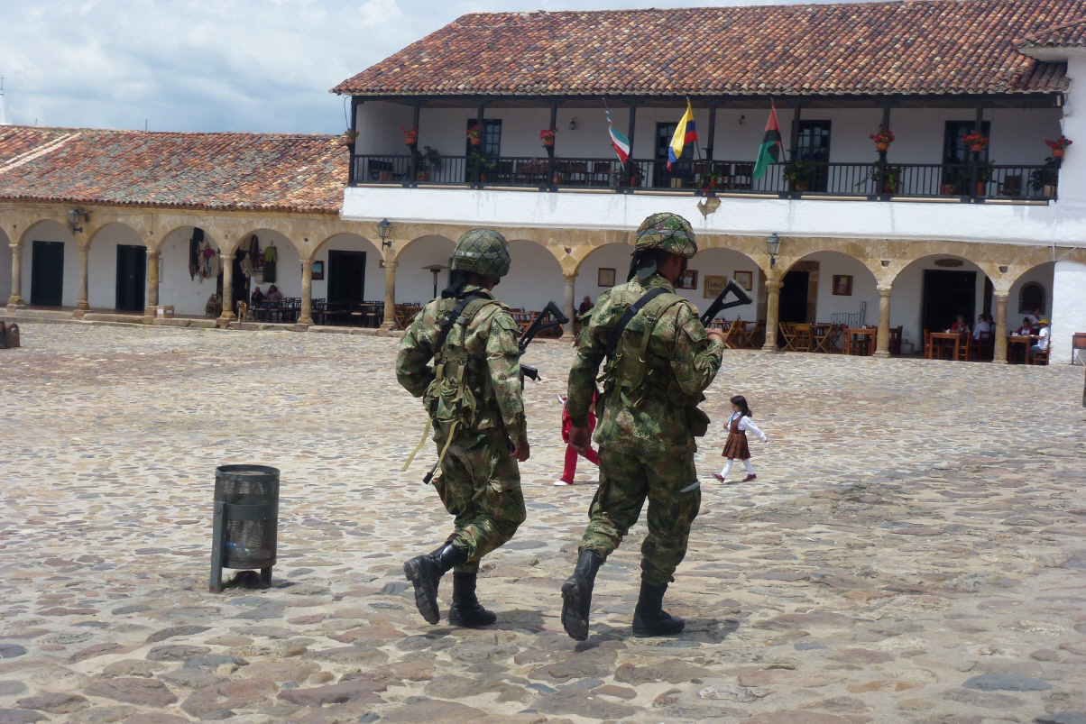 Nachher weiter die Route ‚45A‘ bis ‚Chiquinquira‘ und dann über einen Pass zur kleinen Kolonialstadt ‚Villa de Leyva‘. Die schmale Strasse ist rech gut geteert, aber der Ingenieur war der ‚Stift‘. Mehr als 40 km/h kann man hier wegen der vielen, vielen Löcher und Wellen nicht fahren. Nun hält uns auch noch die Polizei auf. Sie wollen alle Papiere sehen und bitten Kaspar auszusteigen – sonst bekäme der Polizist die Nackenstarre. So lernt man Spanisch, denn sie wollen alles genau wissen: woher, wohin, wie lange und überhaupt alles über unser Reisevorhaben. Wir vermuten, dass es ihnen einfach langweilig ist. Aber alles okay. Endlich in ‚Villa de Leyva‘ angekommen suchen wir den ‚Camping San Jorge‘ vis-à-vis der Feuerwehr. Er liegt ausserhalb des Städtchens, sehr schön gelegen.