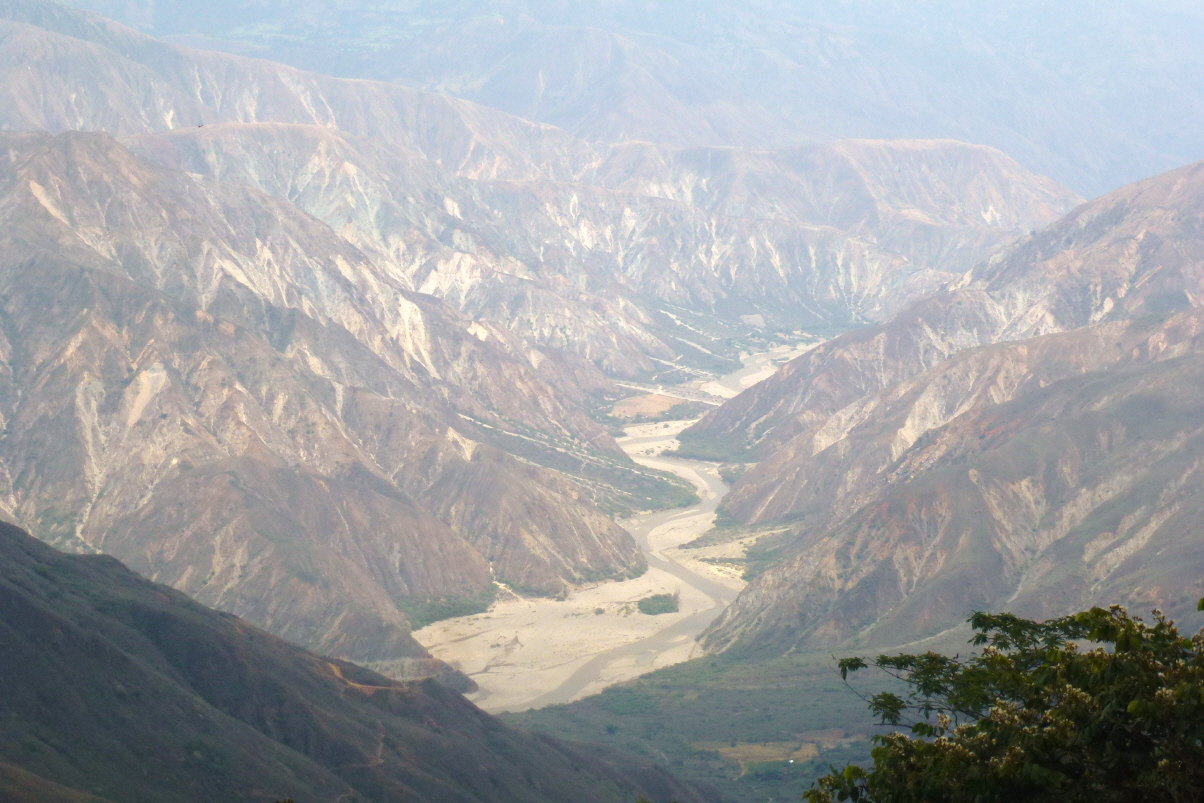 Fahren am tiefsten Canyon von Kolumbien vorbei. Von 1560 m auf 600 m hinunter und dann wieder auf 900 m. Man merkt den Anstieg der Aussentemperatur. Stehen zwischen Hauptstrasse und grossem Bach auf einer Wiese des ‚Balneario el Remenso.‘ Nach dieser Fahrerei nehmen wir im Bad im Bach – 350 km in 9 Stunden – sehr angenehm und entspannend!