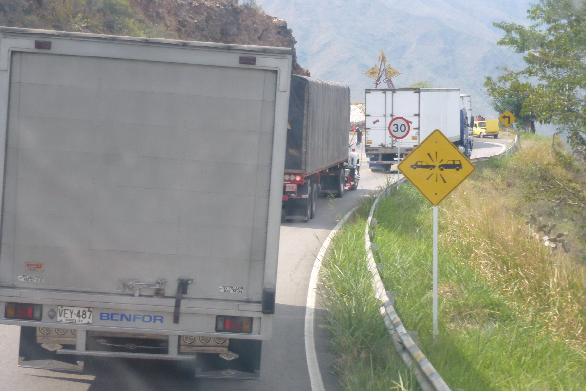 Über 500 km gefahren, wir spinnen!!! Ganz Kolumbien ist eine Strassen-Baustelle! Ein Phänomen sind die Strassenhändler. Sobald bei einer Baustelle ein grösserer Stau entsteht oder auch bei Speedbreakern, sind sie zur Stelle und verkaufen alles was das Herz begehrt. Kalte Getränke, Eiscreme, gebrannte Nüsse, süsse regionale Spezialitäten, gekochte Snacks und Früchte. Sie marschieren den ganzen Stau ab und preisen ihre Ware von Auto zu Auto an. Sie verkaufen noch ziemlich viel.