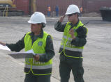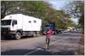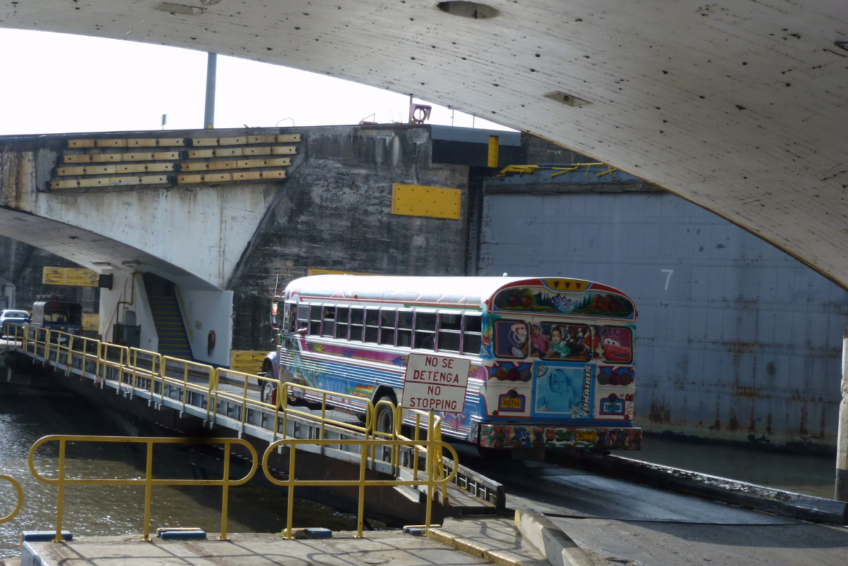 Beim Frühstück ist Bigi ganz kribbelig. Sie ahmt die Steuerbewegung im MAN nach, aber ohne brumbrum. Tea Kalmbach (Agentin für Zollformalitäten) holt uns pünktlich nach dem Frühstück ab. Die Haftpflichtversicherung (15 US$) hat sie bereits abgeschlossen. Bei der Reederei fragen wir, ob das Schiff angekommen ist und holen uns einen der vielen Stempel, die es für die Auslösung unseres Campers braucht. Dann auf der Autobahn quer durch Panama (fast dem Kanal entlang) nach ‚Colon‘ zum Hafen ‚Cristobal‘. Hier am Zoll fangen die kleinen Probleme an. Wir haben weder Original noch Kopie des Fahrzeugausweises dabei, sondern lediglich den ‚Bill of loading‘. Die Zollbeamtin, welche normalerweise die Formalitäten erledigt, ist nicht anwesend. So macht es eine Lückenbüsserin. Sie ist sehr unsicher und fragt ständig nach. Natürlich braucht dies mehr Zeit als normal. Dann in den Hafen. Hier geht Kaspar mit Tea von Schalter zu Schalter und nochmals zurück und das Gleiche noch ein Mal. Die Verschiffungs- und Zollpapiere bekommen viele verschiedene Stempel. Zwischen 12 und 15.30 Uhr geht dann gar nichts mehr. Anscheinend kann niemand die Hafengebühr für den ‚Flat Rack‘ berechnen. Erst nach längerem hin und her wird allmählich klar, dass noch nicht alle Container vom Schiff abgeladen sind und somit noch nichts freigegeben wird. Langsam aber sicher verliert auch die sonst ruhige Tea die Geduld, denn es ist heiss, schmutzig und äusserst laut. Doch dann sind alle Papiere gestempelt, die Hafengebühr von 190 US$ entrichtet und wir werden zu unserem MAN gefahren. Bevor wir in das Hafengelände hereingelassen werden müssen wir um die Ecke noch Warnwesten kaufen. Das mit den offenen Schuhen ist okay. Ausser dass der MAN vor Staub und Schmutz steht, ist alles in Ordnung. Die Zurrbänder werden gelöst und dann kann Kaspar den MAN vom ‚Flat Rack‘ hinunterfahren. Vor dem Ausgang müssen wir noch durch die Desinfektionsschleuse. Der anwesende Arbeiter sagt uns, dass wir sehr lange warten müssen. Aber mit 20 US$ ist das Problem gelöst und der Innenraum stinkt nachher auch nicht von dem ekligen Zeug. . Endlich können wir aus dem Hafen fahren. Es ist bereits 17.30 Uhr und wir verabschieden uns von Tea. Fahren zur Schleuse ‚Gatun‘ mit den vielen Besucherparkplätzen, aber wir dürfen hier nicht übernachten. Über eine schmale Brücke unterhalb der Schleusentore geht es an den Anfang resp. Ende des Panamakanals nach ‚Sherman‘. Auf einem grossen Parkplatz hinter dem Yachthafen parkieren wird. Die Polizei besucht uns und lässt uns als Touristen gewähren. Wir können Tea nur wärmstens empfehlen, denn ohne sie hätten wir es nicht in einem Tag geschafft! (Email von Tea: teakalmbach@hotmail.com)