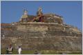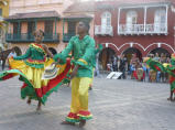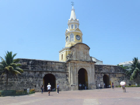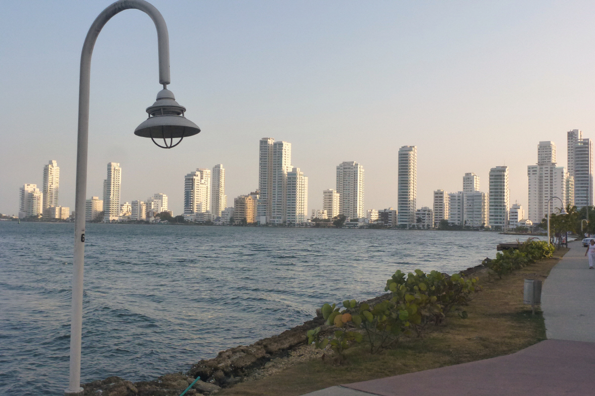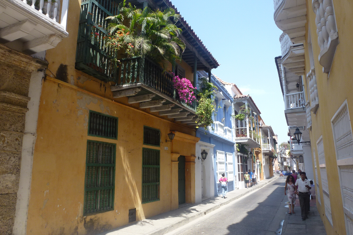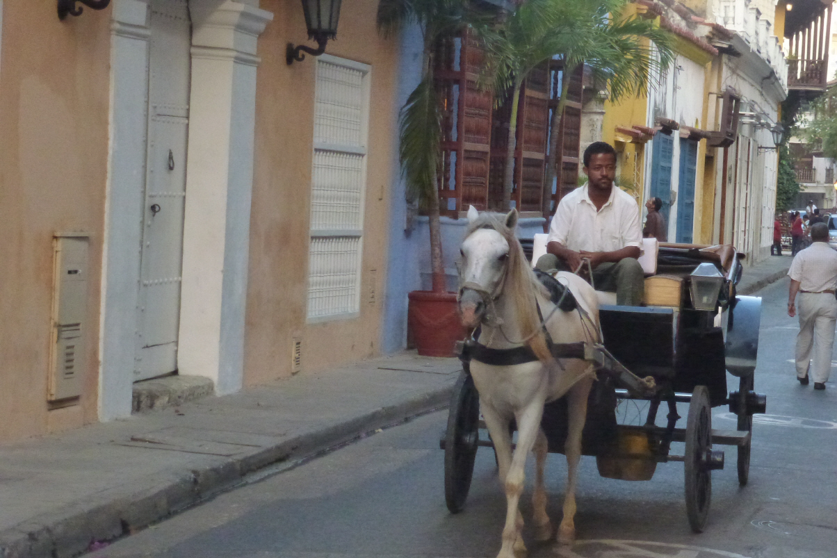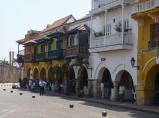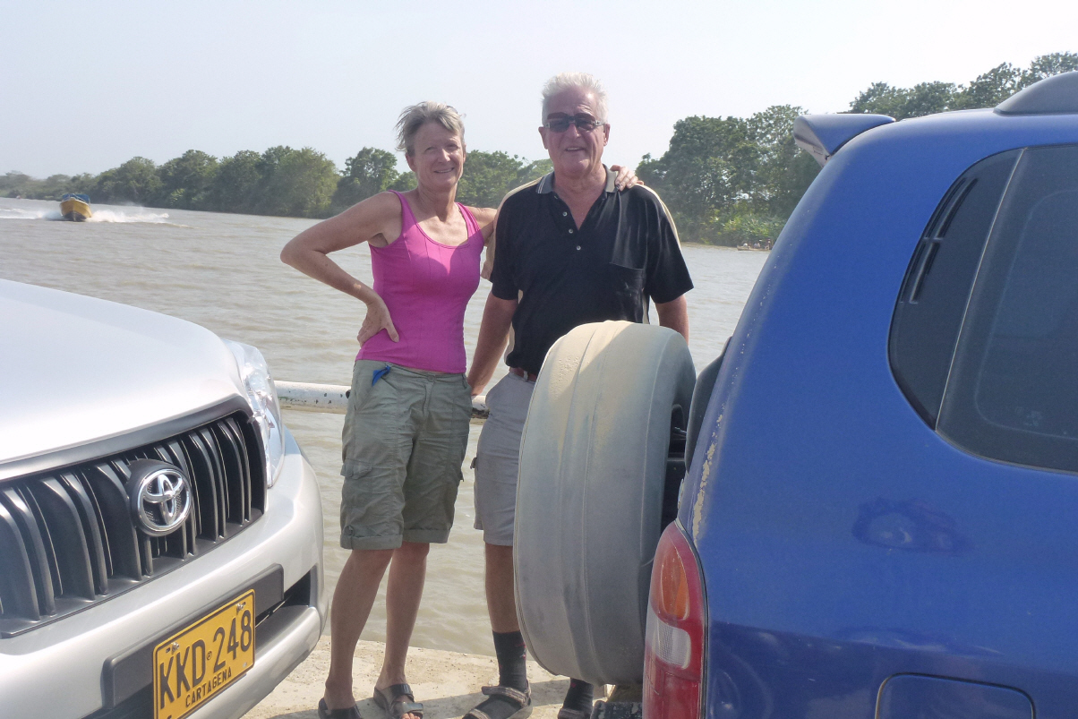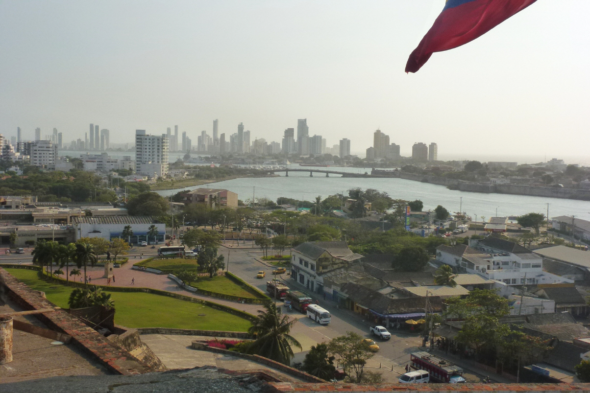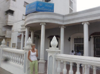Schon früh auf. Ein Kilometer Holperpiste schüttelt uns vollends wach. Mit der wackligen Fähre über den Kanal und dann direkt ins Stadtzentrum von ‚Cartagena‘. Fragen nach dem Weg und es wird uns gesagt, dass wir mit unserem LKW nicht ins Zentrum fahren dürfen. Verweisen uns an eine Tankstelle mit grossem Parkplatz ganz in der Nähe des Stadtteils ‚Manga‘, wo wir hin müssen. Nun mit dem Taxi zum Verschiffungsbüro ‚Enlace Caribe Ltda.‘ zu Mister Luis Ernesto La Rota. Werden nett empfangen. Nach zwei Stunden haben wir die Zusage für die Schiffspassage Cartagena – Panama. Der Camper soll auf ein ‚Flat Rack‘ fixiert werden, welcher auf das Schiff gehisst wird. Abfahrt Ende Woche. Hoffentlich kommt kein Sturm, denn der MAN steht drei Tage ungeschützt auf Deck. Erkunden mit dem Taxi das ‚Hotel Bellavista‘ an der Meeresstrasse Richtung Flughafen. Werden tüchtig über den Tisch gezogen. Bigi fragt schon beim einsteigen ins Taxi, wie viel es kostet. Aber keine Antwort. Am Schluss der Fahrt will er 20‘000! Ist relativ viel. Erfahren später, dass dies der dreifache Preis speziell für uns war! Was soll‘s, hat er eben heute ‚a happy day‘ gehabt. Der Parkplatz des Hotels ist ruhig in einem einigermassen sauberen Hof, sicher und auch nicht so laut. Mit dem Taxi zurück zum MAN und dasselbe lotst uns wieder zum Hotel. Nun erst einmal relaxen, denn es waren ein paar anstrengende Stunden. Spät nachmittags gehen wir in die historische Altstadt, die fast vollständig von einer 15 m dicken Stadtmauer umgeben ist. Das was wir bisher von der Altstadt gesehen haben, begeistert uns. Schöne, alte, farbenfrohe Häuser mit kleinen Holzbalkonen, mit Blumen überwuchert, schmale Gassen und viel Leben. Hier laufen viele grosse Kreuzfahrtschiffe den Hafen an. Tausende vom Schiff kommende Touristen bevölkern die Altstadt. Wir begegnen nur einigen. Kaspar bekommt einen Schreikrampf: 'schau mal diese Männer mit kurzen Hosen und Socken, Frauen mit Hüten!' Von oben auf der Stadtmauer betrachten wir den Sonnenuntergang. Unterwegs zurück zum Hotel essen wir noch in einem Grillrestaurant, sind jedoch die einzigen Gäste.