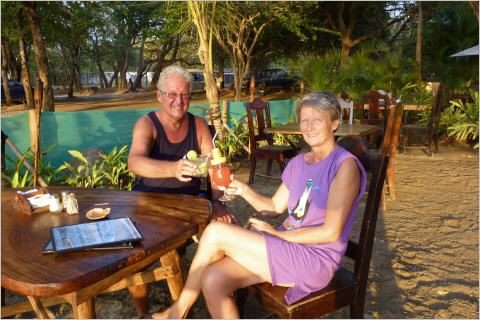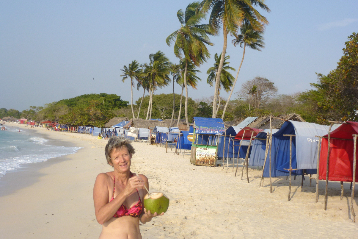 Kaspar ist sauer, denn Bigi muss immer die schönsten Ecken aussuchen! Hier haben die Sklaven im 17. Jh. einen Kanal als Verbindung vom ‚Rio Magdalena‘ zum Meer gebaut. Nun geht’s nochmals eine halbe Stunde, am Schluss über äusserst schlechte Strasse (Bachbett) zum Parkplatz vis-a-vis der kleinen Polizeistation. Endgültig genug, hier logieren wir. Zum 200 m entfernten Strand hinunter. Karibikstrand pur mit türkisblauem Wasser, schrägen Palmen, kleinen Bretterbuden-Restaurants, Liegestühlen und Hängematten. Trinken einen Caipirinha aus der Kokosnuss. Die Nerven sind beruhigt. Abends bäckt Bigi noch Brownies. Für die Schiffspassage nach Panama werden wir den Kühlschrank abtauen. So ist der Buttervorrat aufgebraucht.