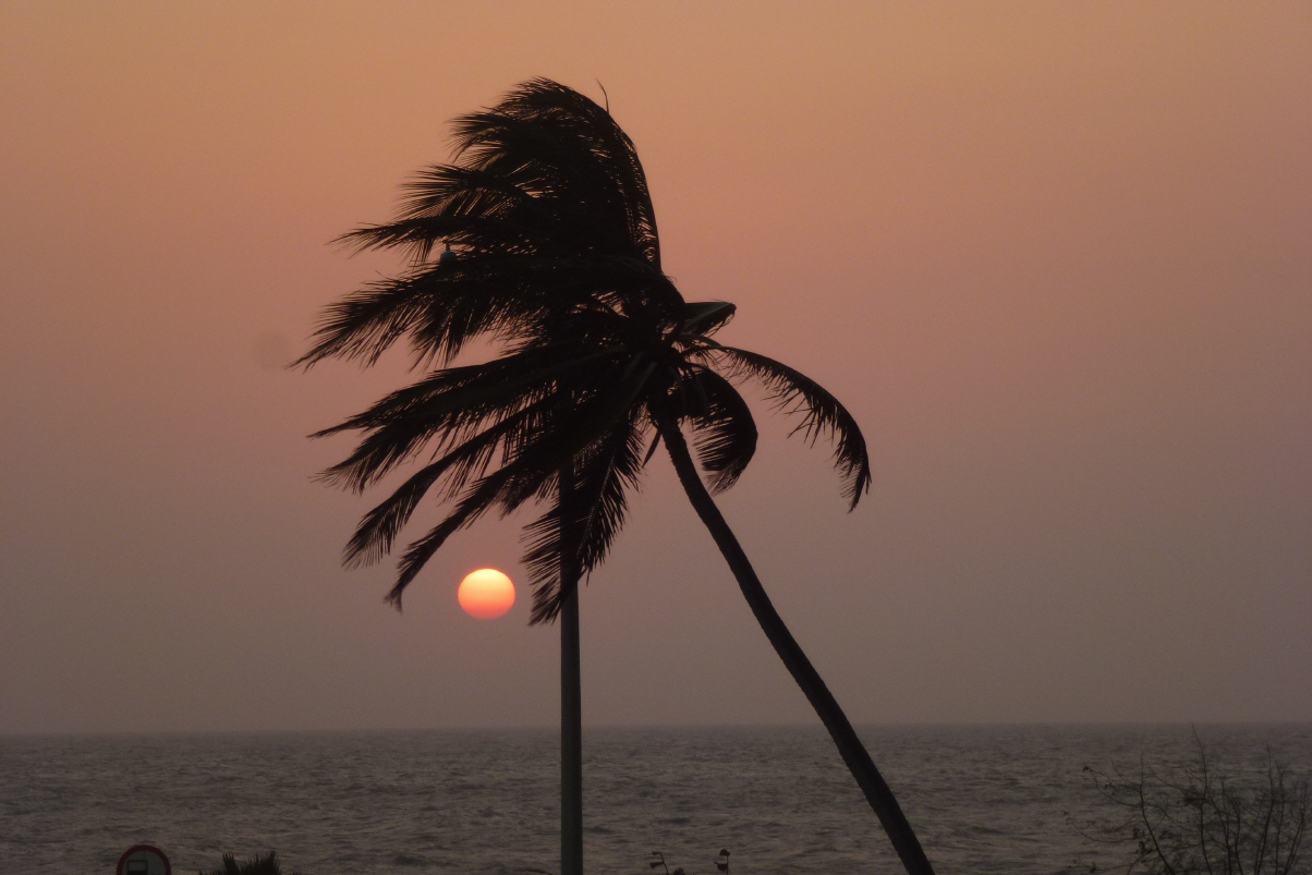 Dann wird es flach und sehr heiss. Fahren an grossen Palmöl- und Bananenplantagen vorbei. Die Behausungen werden ärmer. Es scheint ein Süd-Nord-Gefälle in Kolumbien zu geben. Auch heute sind wieder viele LKWs unterwegs. Wie kann sich jemand über den LKW-Verkehr auf der Autobahn Zürich-Bern ärgern?! Zur Feier des Tages – das Thermometer hat die 40 °C-Marke geknackt – stellen wir die Klimaanlage ein. Sie funktioniert und läuft auf Hochtouren. Wir sind froh, diese in Ecuador repariert zu haben. Nun stehen wir beim Flughafen von ‚Santa Marta‘ an der kleinen Strandpromenade am Karibischen Meer. Die Sonne versinkt im Meer. Gerade mal noch geschafft! Drei Polizisten wollen uns zuerst weg schicken, aber wir können sie mit unseren letzten drei Lindor-Kugeln ‚bestechen‘. Sind wieder einmal nudelfertig und haben keine Hunger.