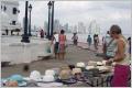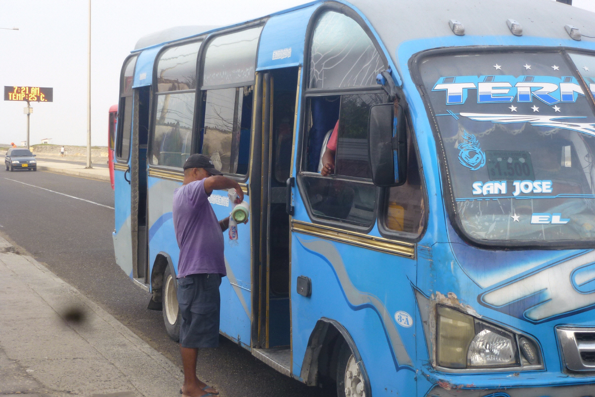 Den Frühstückskaffee holen wir auf der Strasse. Vor dem Hotel macht sich jeweils morgens ein Strassenverkäufer bequem. Er kennt alle Leute. Die Busfahrer halten hier, vielfach für einen Kaffee, eine Zigarette und einen kurzen Schwatz, welcher mit viel Gelächter abgerundet wird. Damit wir das Hotel mit Kreditkarte bezahlen können muss extra die Besitzerin geweckt werden, denn sonst weiss niemand wie dies funktioniert. Mit dem Taxi zum Flughafen und dann beginnt die Wartezeit. Der Flug nach Bogota ist gegen elf Uhr, dann drei Stunden Wartezeit und verspäteter Weiterflug nach Panama City.