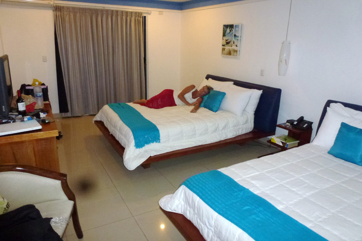 Hier werden wir durch die Tochter der hiesigen Zoll-Agentin abgeholt und zum Hotel ,Amador Ocean View‘ auf die Insel ‚Perico‘ gebracht. Die drei Inseln sind mit einem Damm verbunden, der mit dem Aushub des Panamakanals aufgeschüttet wurde. Müssen durch die ganze Stadt fahren aber es ist leider schon dunkel. Seit heute haben wir auf der Kamera (vermutlich zwischen den Linsen) einen schwarzen Punkt – anscheinend war der Kamera der gestrige Tag im Hafen zu viel!