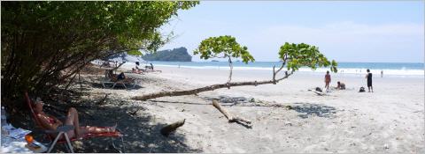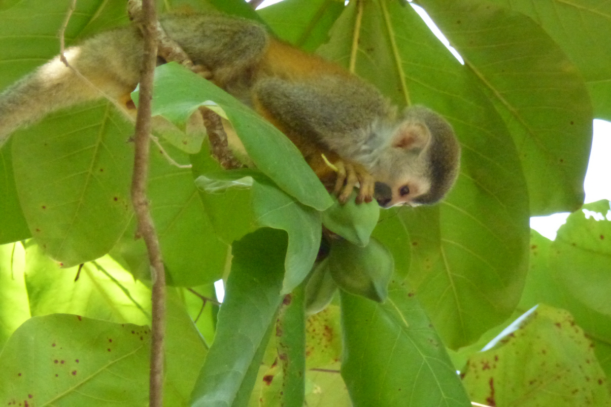 Hier an diesem Strand waren wir bereits im 2004. Stehen schön im Schatten mit Sicht aufs Meer. Der Wellengang ist hoch und so baden wir nur etwa 30 m im Wasser. Lesen und am Strand spazieren. Auf jeden Fall hat sich Kaspar wieder einmal den Pelz verbrannt. Kapuzineraffen turnen durch die Bäume.