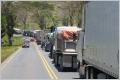 Viel LKW-Verkehr! Wir kriechen im Schneckentempo (25 km) in der LWK-Kolonne den Berg hinauf und ebenso den Berg hinunter. Alle stehen krampfhaft auf der Bremse, denn so ein 40-Tönner ist sonst kaum zu halten!