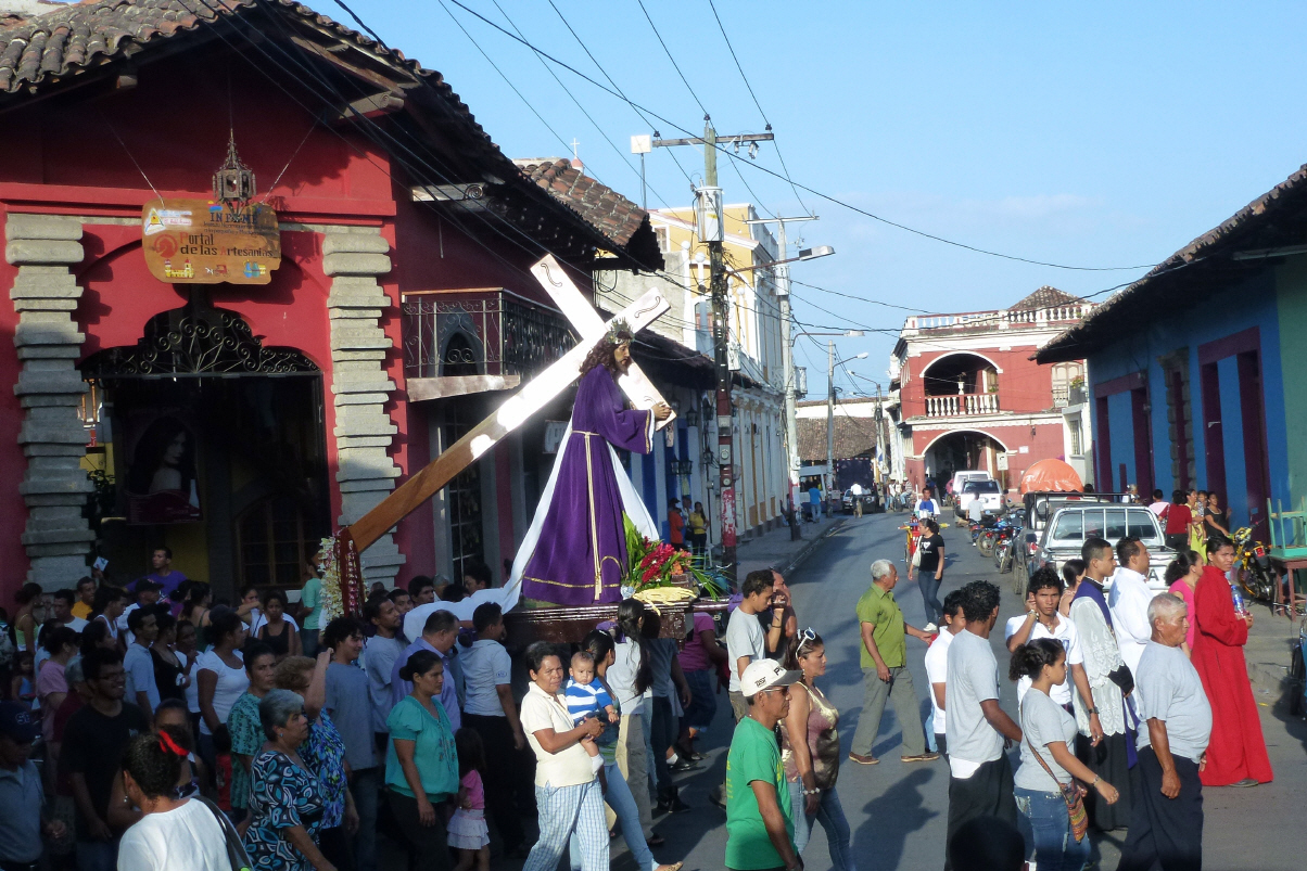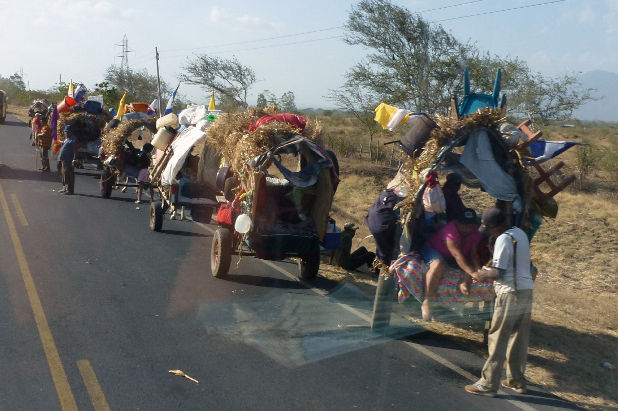 Wir sehen an der Strassenböschung viele Planwagen mit Familien, gezogen von Pferden und Ochsen. Leider wissen wir nicht um was für Leute es sich handelt. Auf jeden Fall sind grosse Transparente an den Wagen angebracht und vermutlich demonstrieren sie. Auf guter Strasse weiter bis nach ‚Granada‘ am grossen Nicaragua See.