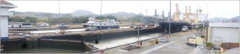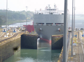 Die Häuser sind ausgekernt und nur noch die Aussenmauern, gestützt durch Eisenpfeiler, stehen noch. In fünf Jahren oder so wird diese Altstadt ein touristisches Juwel sein! Am frühen Nachmittag nehmen wir den Bus für die Weiterführung der Tour durch die Neustadt bis zu den ‚Miraflores Schleusen‘ am Panamakanal. Es ist eine gigantische, dreistufige Schleuse. Die riesigen Schiffe passen in Länge und Breite haargenau in die Schleuse. Die Schiffe werden nach dem sogenannten ‚Panama Standard‘ gebaut, was bedeutet ‚genau passend‘. Die Ozeanriesen werden mittels Zahnrad-Loks durch die Schleusen gezogen bzw. gebremst. So zwei bis vier vorne, mitte und auch hinten. Von der Aussichtsplattform hat man eine gute Übersicht auf die ganze Doppelschleuse. Es befindet sich gerade ein riesiges chinesisches Containerschiff in der Schleuse. Imposant, wie das Schiff hier bewegt wird und es langsam aber sicher ein paar Meter tiefer sinkt. Die Schleusen müssen gesamthaft 26 m ausgleichen, obwohl ja eigentlich Pazifik und Atlantik gleich hoch liegen - dazwischen ist eine Landerhöhung, die überwunden werden muss. Das erste Schiff durchquerte den Kanal im Jahre 1914. Das grosse Problem ist, dass zu viel Frischwaser bei jeder Schleusendurchfahrt verloren geht. 2006 hat das Volk von Panama einem neuen Schleusenprojekt für wesentlich grössere Ozeanschiffe zugestimmt. Diese Schleusen sind seit 2010 in Bau und sollen zum hundertjährigen Jubiläum des Kanals im 2014 fertig sein. Das Frischwasserproblem wird dann nicht mehr so gross sein, da nur noch 40 % der Menge verloren gehen. Es wird seitliche Bassins geben, wohin das Frischwasser jeweils zurückgepumpt wird. Auf unserer Tour sind wir an einem futuristischen Einkaufszentrum vorbeigefahren. Hier arbeiten 10‘000 Personen, also etwa gleich viele wie für den Betrieb des Panama Kanals im Einsatz sind. Über das Wochenende sollen jeweils 150‘000 Leute das Shopping Zentrum besuchen! Für uns unvorstellbar. Was da wohl alles eingekauft wird?!
