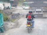 Dann die Route 40 über einen extrem steilen und kurvigen Pass. Die Kolumbianer fahren haarsträubend und gefährlich. Kaspar kann aber locker mithalten. Ein paar Mal halten wir aber doch den Atem an. Es wird manchmal sehr, sehr eng! Eine ‚Drei Pässe Fahrt‘ in der Schweiz ist aber rein gar nichts im Vergleich! Ab ‚Ibague‘ - nur 350 m.ü.M. und 39 Grad heiss – über eine vierspurige Autobahn nach ‚Girardot‘ und weiter nach ‚Fusagasuga‘. Beim Tanken offerieren sie uns eiskalte ‚ague de panela‘. Okay, wir greifen zu: Wasser mit unraffiniertem, aromatischen Rohrzucker mit Limonensaft.