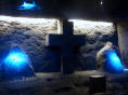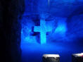 Nun geht’s zu Fuss den Berg hinauf zum ‚Parque de Sal‘. Hier bauten die Einheimischen Salz ab. Sie hatten eine kleine Kapelle im Bergwerk. 1992 wurde die Kapelle wegen Einsturzgefahr geschlossen. 1992 – 95 wurde die heutige Kathedrale mit 80 Tonnen Sprengstoff auf einer Fläche von 8200 m3 und einer Höhe von 40 m herausgesprengt. Diese weltweit grösste Höhlenkirche ist dreischiffig und geheimnisvoll beleuchtet.