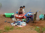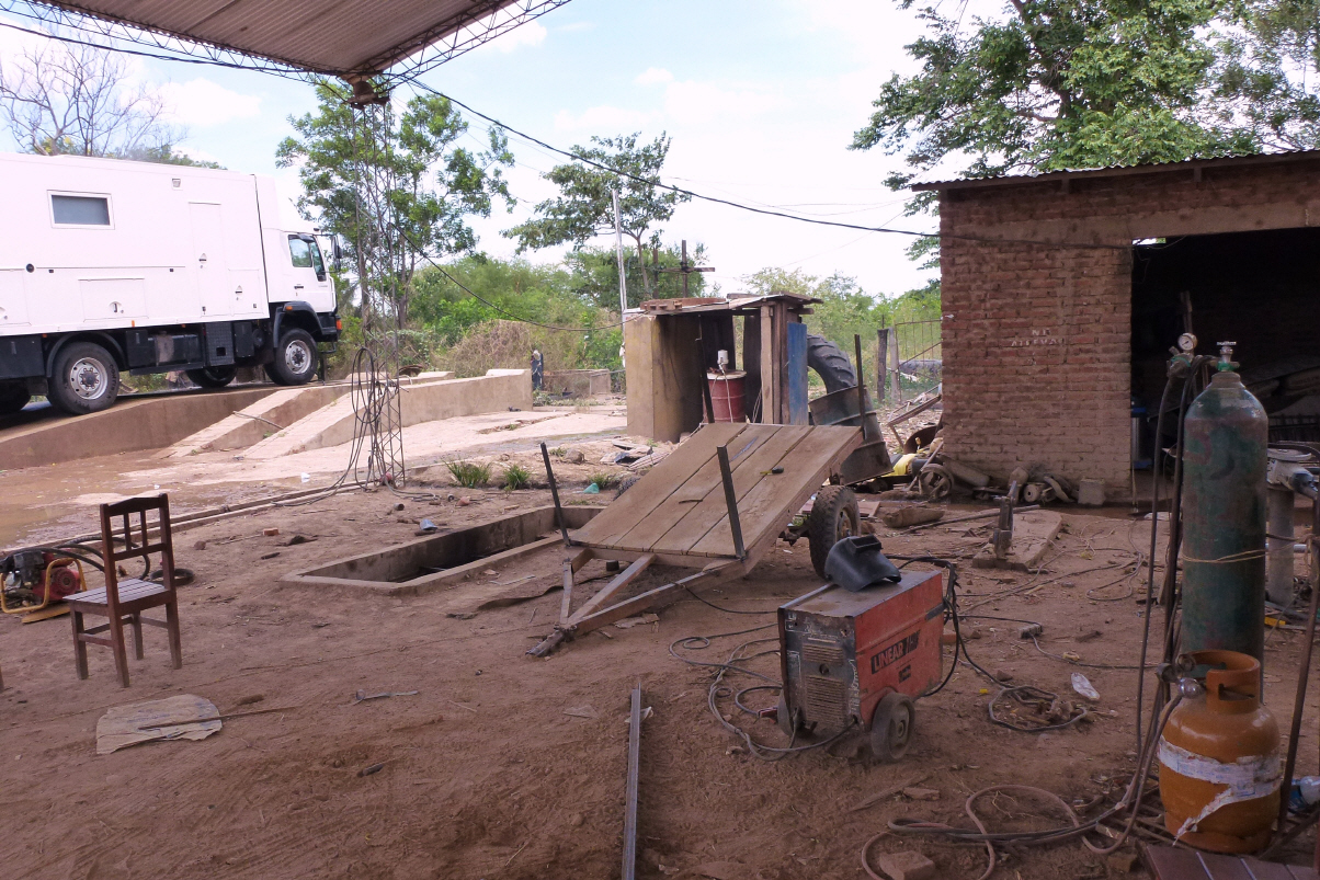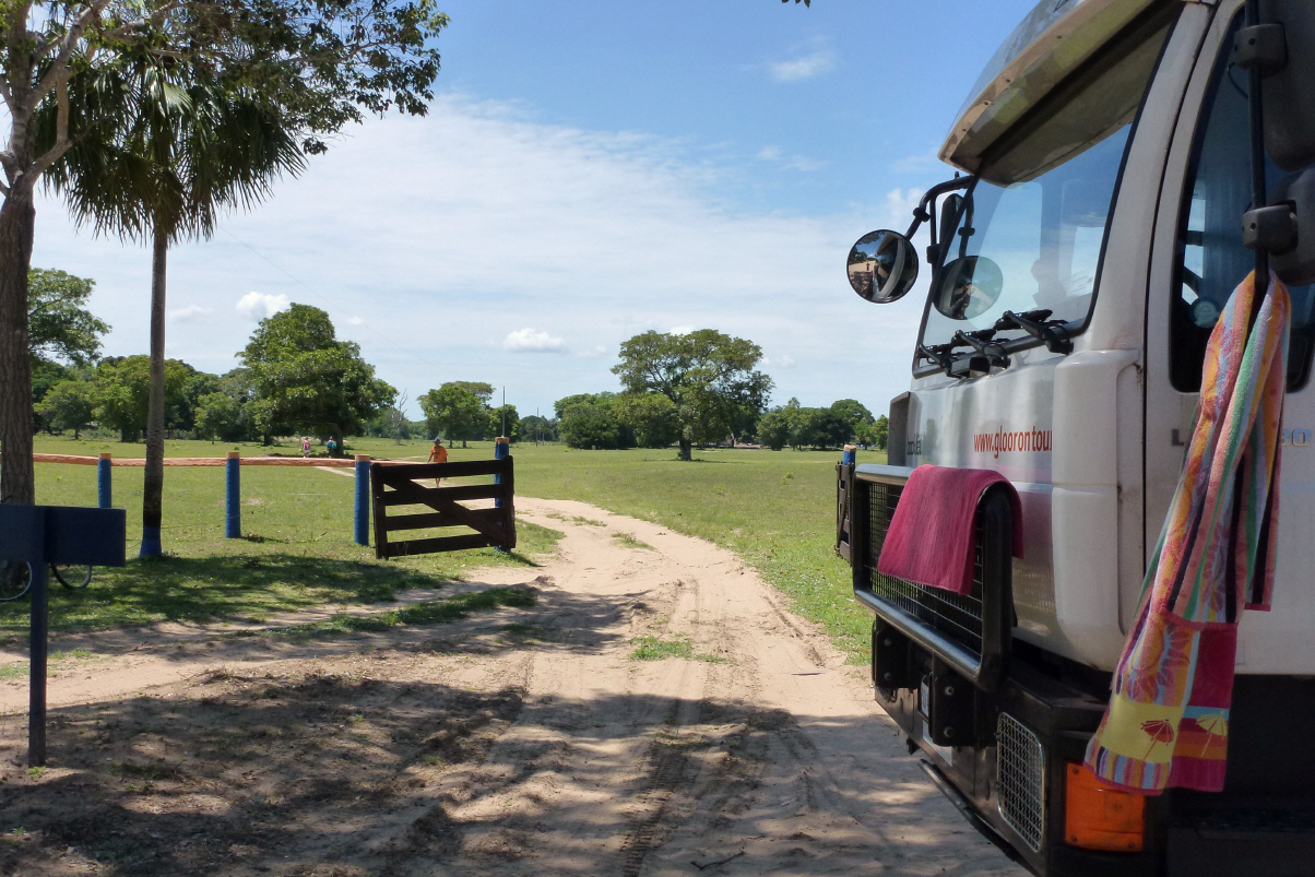 Zurück mit dem MAN, an welchem Kaspar vorsorglich die Luft aus den Pneus abgelassen hat. Dies macht er neuerdings mit der Stoppuhr: zwei Minuten pro Pneu. Möchten unsere Gasflasche füllen. Man kann jedoch nur neue volle Flaschen kaufen. So kaufen wir eben Wasser und Früchte ein, denn dies brauchen wir immer. Zurück im Camping Formosa kühlen wir uns ab im Fluss und geniessen den Schatten.