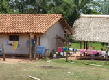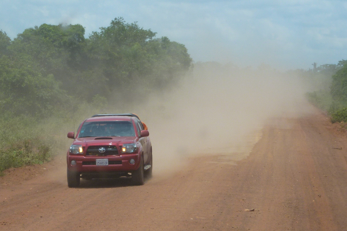 Verlassen Santa Ana früh am Morgen, d.h. schon 06.15 Uhr! Bis San Ignacio sind es 45 km recht gute Erdstrasse. Von Zeit zu Zeit warten am Strassenrand geduldig Leute auf den Bus, der da vorbei kommen soll. Den Hauptplatz finden wir nur mit Mühe, aber später verlassen wir das Dorf über eine richtungsgetrennte Alleen-Strasse mit grandioser Strassenbeleuchtung. Schauen uns die Kirche an. Diese gefällt uns aber nicht. Die alte Kirche wurde abgebrochen und an ihrer Stelle eine fast gleiche wieder aufgebaut. Weitere 171 km über holprige, staubige Piste. Es braucht viel Muskelkraft, denn bei jedem kreuzenden Auto Fenster rauf und nach der Staubwolke runter kurbeln. Fahren an einigen Eingeborenendörfern vorbei.