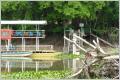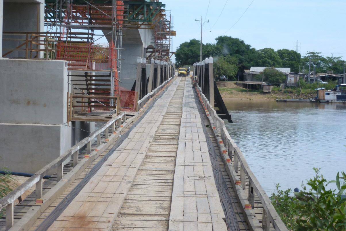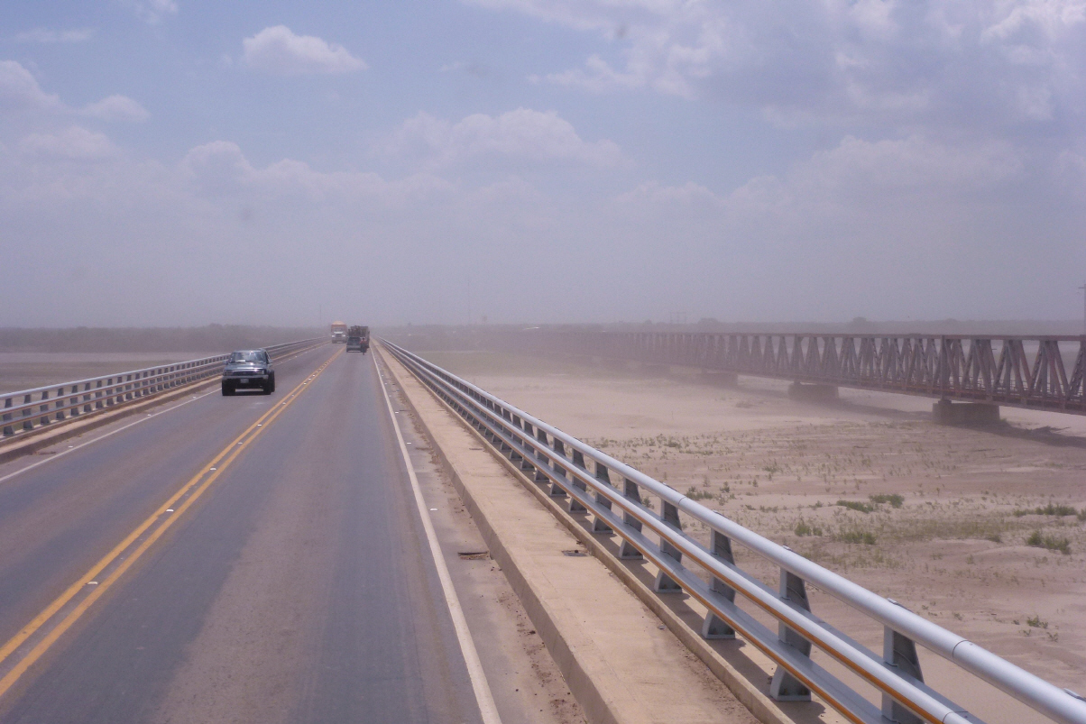 Nur eine sehr hohe Brücke wird aus Stahlbeton gebaut, damit die Fluss-Schifffahrt nicht behindert wird. Zuerst wollen wir in einem Eco-Park mit Camping übernachten. Hier muss man aber über einen langen hölzernen Fussgängersteg zum Camping. Die Hotelanlage ist sehr schön am Fluss gelegen, aber menschenleer. Wir fragen den Manager ‚warum‘, und er erklärt uns, dass keine Fischfangsaison ist.