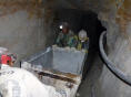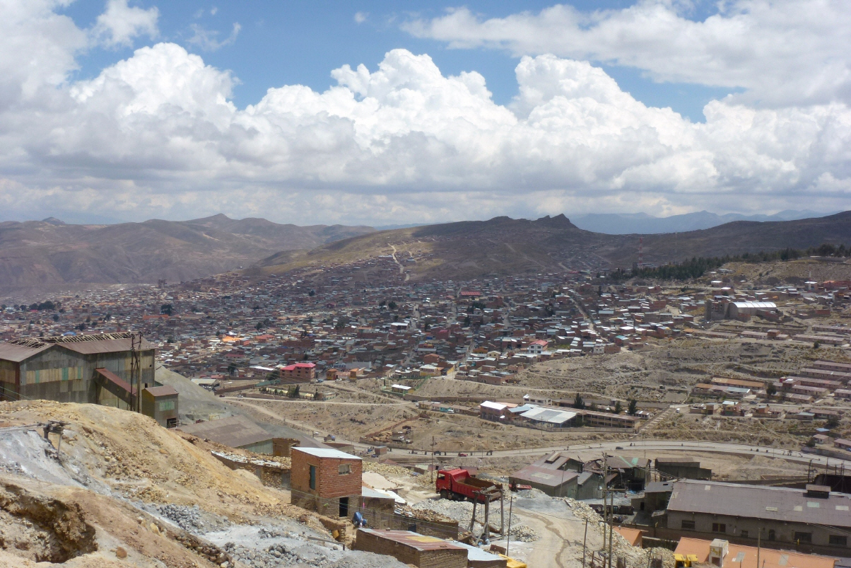 Und wirklich um 8.30 Uhr ist kein Lastwagen mehr vor uns. Beim Reisebüro ‚Altiplano‘ warten wir auf unseren Guide ‚Elena‘. Die sehr kleine Bolivianerin begrüsst uns und erklärt bereits am Anfang einige Dinge über die Tour, Minen, Löhne, Lebensbedingungen, Korruption und Bolivien. Mit dem Bus der Einheimischen zum ‚Cerro Rico‘. Zuerst kaufen wir für die Bergarbeiter in den Minen ein. Es ist Tradition, dass Touristen Geschenke wie Kat-Blätter, Dynamit, Zündkabel, Zündkapseln, Energydrink oder Wasser mitbringen. Auf Anraten von Elena kaufen wir 20 Büchsen von dem energiespendenden Gesöff. Nun heisst es Minen-Ausrüstung fassen: Gummistiefel, Regenhose und -jacke sowie Bergarbeiterlampe mit grosser, dazugehöriger Batterie. Mit einem Microbus weiter den steilen Berg hinauf. Elena sucht eine Mine, in welcher gearbeitet wird. Vor und in der Mine verteilen wir die Energy-Drinks an die Bergleute. Gehen ca. 500 m in die Mine hinein. Müssen uns bücken. Achtung: elektrische Drähte, es ist pflotschig. Alles in allem: grausame Arbeitsbedingungen! Zuhinterst in der Grube arbeiten 5 Bergleute. Sie füllen einen Schienen-Kippkarren mit Zinksilbergestein. Ein Karren fast eine Tonne. Die Bergleute müssen in ihrer Schicht mindestens zehn Karren aus dem Berg bringen. Aussen wird das Gestein zerkleinert und in Schubkarren auf Lastwagen verladen. Alle Arbeiten innerhalb der Mine und Draussen werden von Hand geleistet. Elena engagiert sich sehr auf der Seite der Bergleute. Sie spricht mit allen und alle kennen sie. Hier zu arbeiten ist ein Graus! Von der spanischen Entdeckung des Silberberges bis zum Ende der Kolonialzeit 1825, sind mindestens acht Millionen Bergarbeiter ums Leben gekommen. In der heutigen Zeit arbeiten 9‘000 Männer, Frauen und ca. 200 Kinder in den Minen. Die Lebenserwartung beträgt max. 45 Jahre und die meisten haben Staublungen. Kleider und Lampe zurückgeben. Wir sind froh, heil wieder aus dem Berg gekommen zu sein. Es gibt eine Minentour für Touristen, aber unsere Tour war lebensecht! Essen in einem bolivianischen Restaurant ein reichhaltiges Mittagessen und es gesellt sich zu uns an den Tisch eine portugiesische Studentin. Zurück im Camper Siesta. Gleich nebenan ist ein Fest im Gange mit schrecklicher Guggenmusik. Später in der Altstadt wollen wir das Museum ‚Casa nacional de Moneda‘ besuchen. Dort angekommen sehen wir, dass ein Dokumentarfilm über die Mineros in den Minen von Potosi gezeigt wird. Der Film heisst ‚todos los dias la noche‘ und wurde vom Schweizer Jean-Claude Wicky in Zusammenarbeit mit ‚Télévision suisse romande‘ gedreht. Sprechen kurz mit Ihm. Er kommt aus Moutier. Der Film geht uns so richtig unter die Haut. Die Misere der Minenarbeiter ist sehr gross! Der Film wird hier an einem Filmfestival gezeigt und wir hoffen, dass er den Weg zu den Filmtagen in Solothurn findet. Verspüren keinen Hunger. Zurück im Camper spielt immer noch die Katzenmusik, und dies bis zwei Uhr morgens.