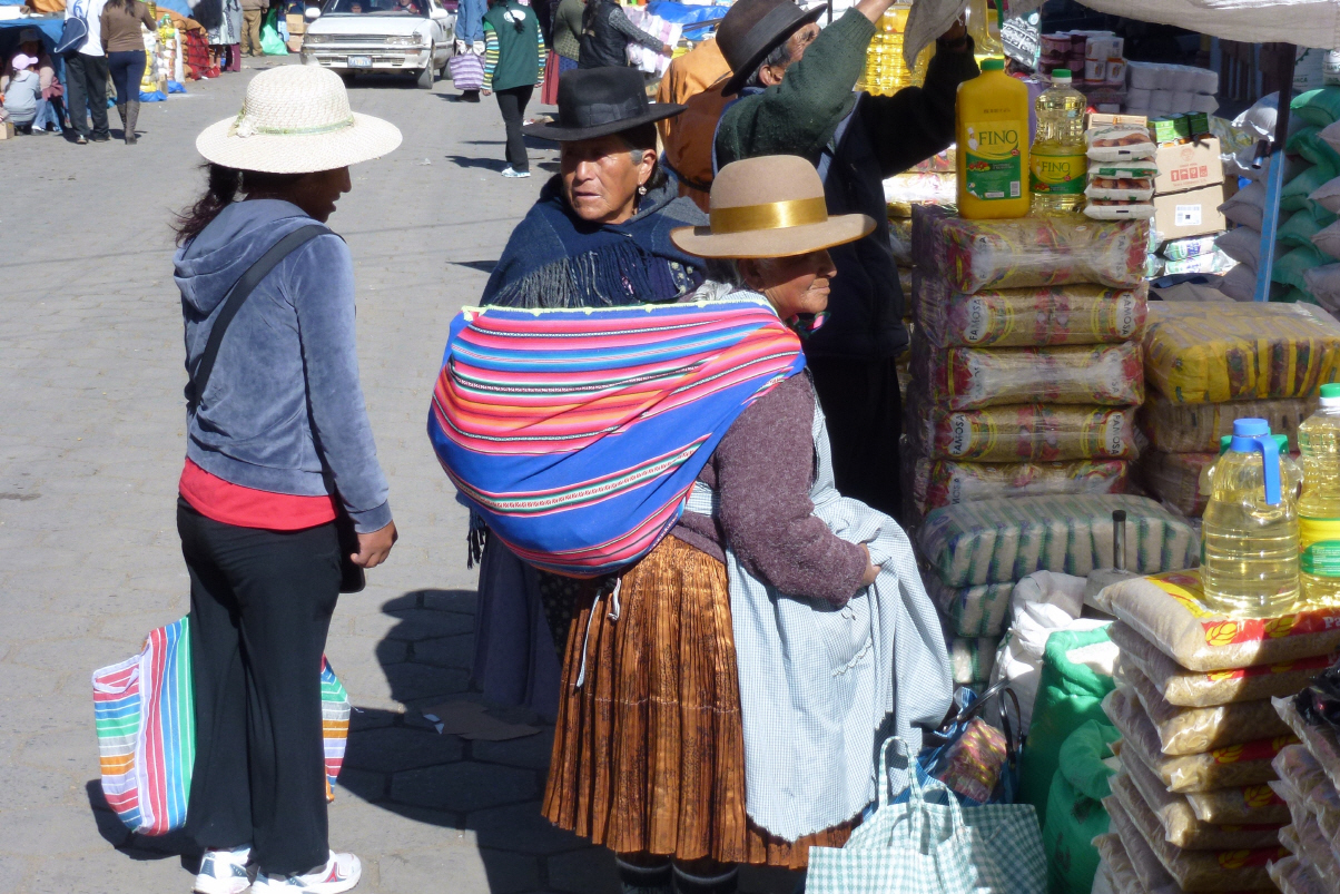 Es klopft an der Tür. Ein Bolivianer sagt uns, dass wir hier nicht parkieren dürfen. Der Grund: wir stehen vor der hohen Mauer der Psychiatrie. Die Insassen könnten ja über unser Dach flüchten. Also auf die andere Strassenseite. Hier wollen wir bleiben. Ausser Hundegebel war die Nacht ruhig. Bummeln zum Markt und geniessen zuerst einen frischen Multivitaminsaft. Kaspar kauft sich zwei gut gebackene Brötchen und vertilgt eines auf der Stelle.