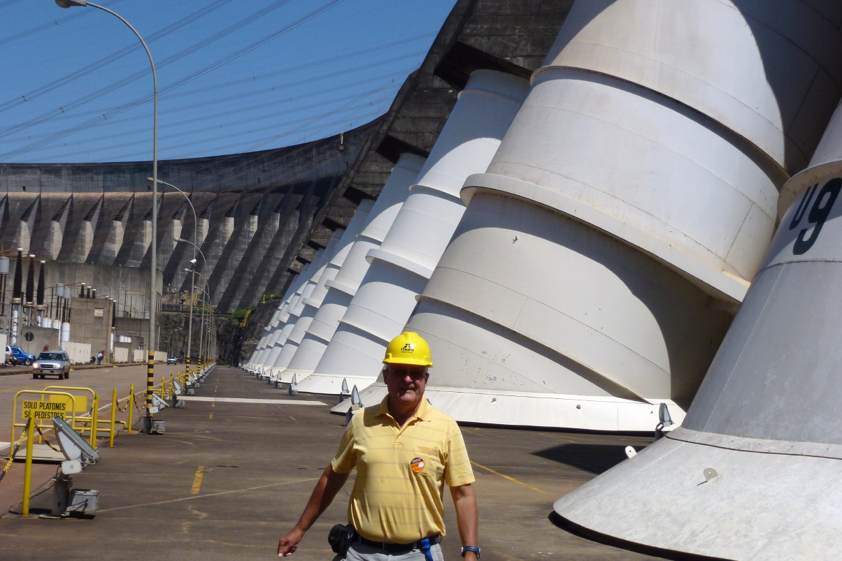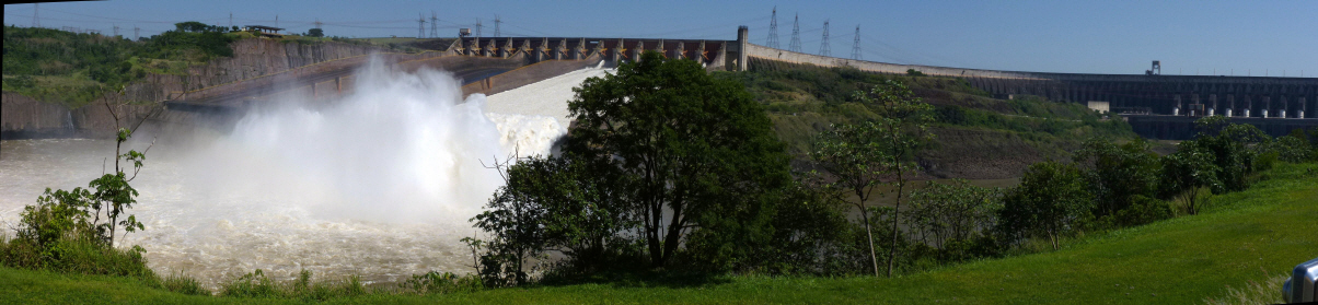 Itaipu ist schwer unter Beschuss der Umweltschützer, da viel Land unter Wasser gesetzt wurde. Grosser Kampf für ein positives Image! Die Staumauer ist ca. 120 m hoch. Im Innern sind riesige Kavernen für Turbinen, Generatoren und Transformatoren. Ein Team von 11 Personen überwacht alles rund um die Uhr am Bildschirm.