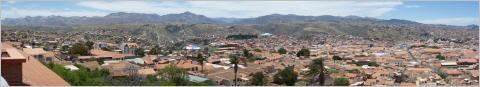 Dann steil hinauf zum Mirador ‚Recoleta‘. Von hier wunderbare Aussicht über die Stadt. Sucre wird auch die ‚weisse Stadt‘ genannt.