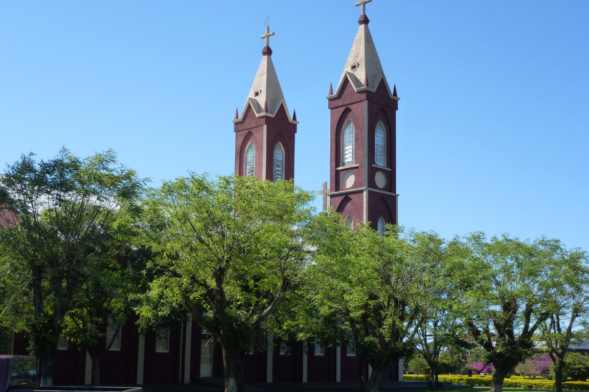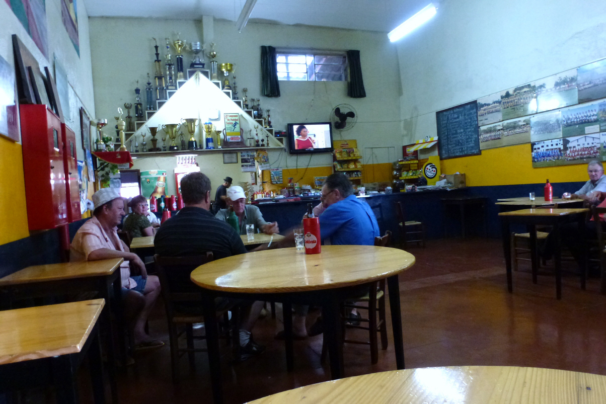 Auf guter Strasse geht’s Richtung Norden auf der Nr. 163 nach Cascavel und Toledo. Jetzt stehen wir im kleinen Dorf ‚Ipiranga‘ bei der grossen Kirche. Im Gemeinschaftszentrum des Dorfes, vermutlich durch einen Fussball-Club geführt, genehmigen wir uns einen Caipirinha. Um 20 Uhr ist katholischer Gottesdienst. Eine halbe Stunde vorher kommen die ersten Autos angefahren und bei Beginn des Gottesdienstes ist die Kirche mit 300 Sitzplätzen fast voll! Heute ist ‚Allerheiligen‘ und in Brasilien erst morgen Feiertag.