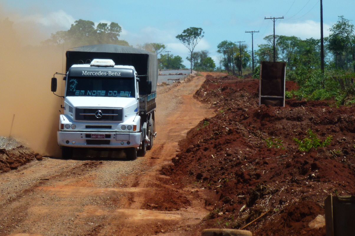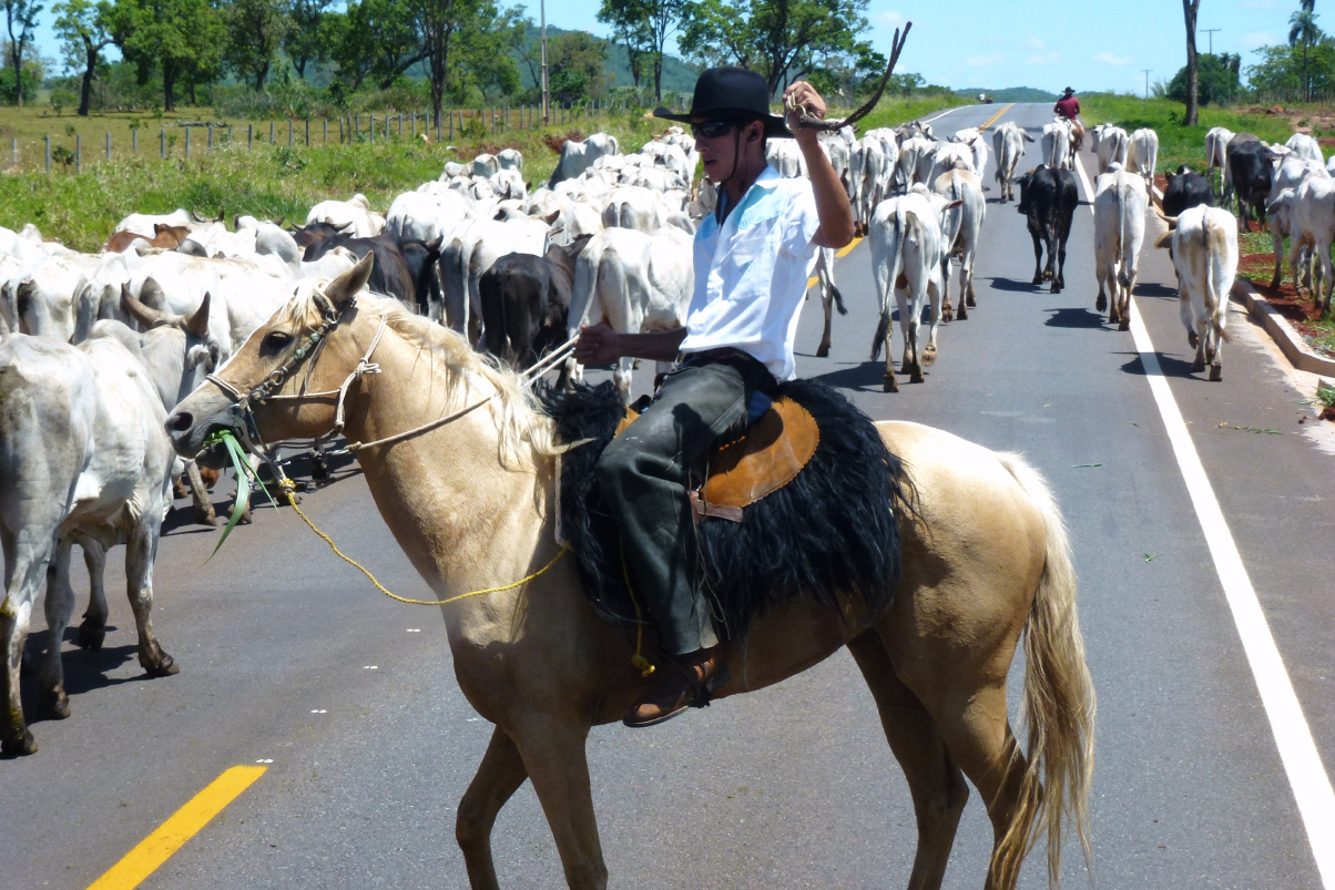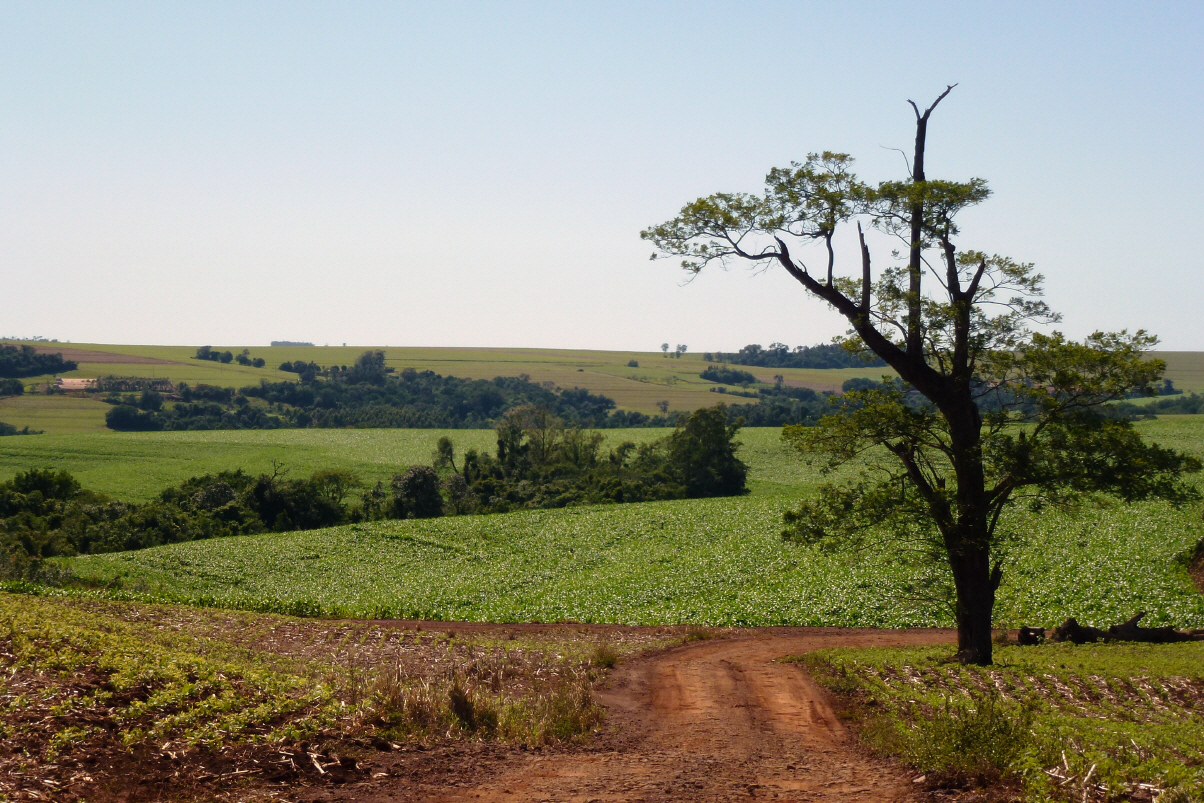 Gutes Frühstück mit Ihnen und Nelson hat eine Ausrede, um zwei Stunden später zur Arbeit zu fahren. Während dem Morgenessen kommen zwei Männer, einer in Uniform und mit Gewehr. Wir sind etwas erstaunt. Guisela erklärt uns, dass dies eine Denguefieber-Kontrolle ist. In der Vergangenheit gab es einzelne Fälle, vor allem in städtischen Gebieten. Es wird regelmässig kontrolliert, ob ja kein stehendes Wasser im Haus und Garten ist. Jeder Unterteller der Pflanze wird begutachtet. Geben Guisela ein paar gelesene Bücher, denn sie liest heute noch sehr gern in Deutsch. Verabschieden uns. Es war eine schöne Zeit mit ihnen zusammen. Fahren für Brot und Süssigkeiten zum Bäcker und auf der Strasse kaufen wir noch Ananas und Mangos. Über die Brücke in den brasilianischen Staat ‚Mato Grosso do Sul‘. Durch hüglige Landschaft fasst alles geradeaus, vorbei an den ersten Zuckerrohr- und Spanischnüsslifeldern sowie aufgeforsteten Nutzwäldern.