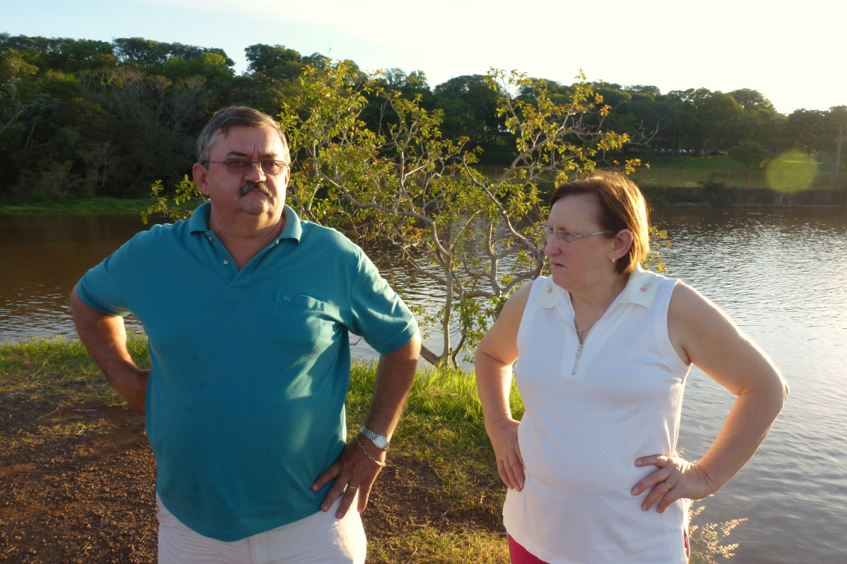 In Guaira finden wir mit Navigationssystem auf Anhieb das Haus von Guisela und Nelson. Guisela ist die Schwester von Carlos aus Elstal. Zwei böse Boxerhunde erwarten uns mit grossem Gekläff. Nach einiger Zeit öffnet Nelson die Tür, die Boxer in den Zwinger und wir in den kühlen Hinterhof. Guisela humpelt, da sie vor 10 Tagen von einer Katze gebissen und gekratzt wurde. Sie hat eine starke Blutvergiftung. Die Tochter ist Tierärztin und sie hilft in der Praxis. Wir plaudern und vergleichen dabei Brasilien mit der Schweiz: ‚was ist der Unterschied von einem Motel hier und in Europa?‘ Brasilianische Motels sind Absteigen für Prostitution oder junge Paare ohne eigene Wohnung. Die Motels befinden sich nicht in Städten, sondern immer an den Überlandstrassen. Sie sind von hohen Mauern umgeben und auch die Ein- und Ausfahrt ist vor Blicken geschützt. Nachher zeigen sie uns noch kurz die Stadt. Hier waren bis 1982 berühmte Wasserfälle ähnlich Iguazu, die durch den Stausee Itaipu unter Wasser gesetzt wurden. Schade, es wird bis heute bedauert, dass dieses Naturwunder versank. Dies hätte Touristen in Scharen angelockt.