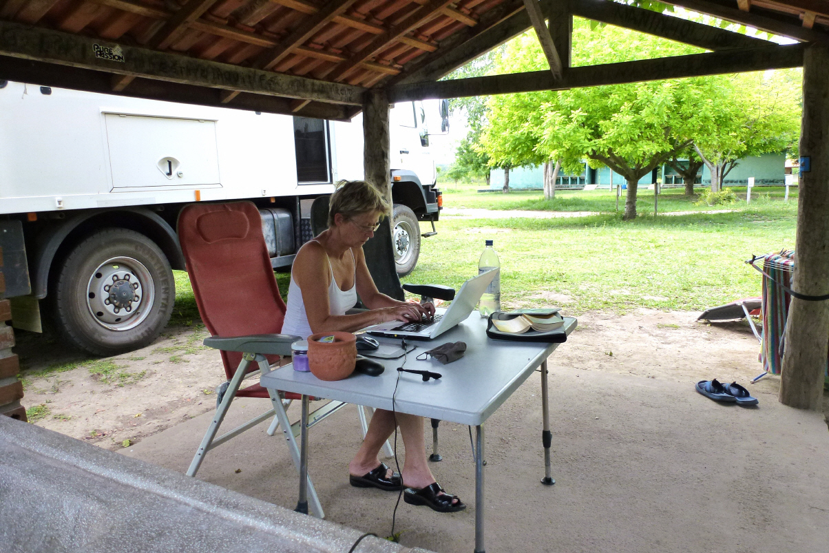 Ein wenig im Pool liegen. Zurück beim MAN zeigen wir dem Guide und zwei anderen Brasilianern Fotos von der Schweiz und trinken dazu Caipirinha. Werden noch auf einen zweiten Drink ins Hotel eingeladen, aber dies schaffen wir nicht mehr. Lieber schlafen. Kaspar hat heute auch einige Zeit im Camper am Computer verbracht. Er muss sich immer wieder abtrocknen, denn Schweiss rinnt in Strömen.