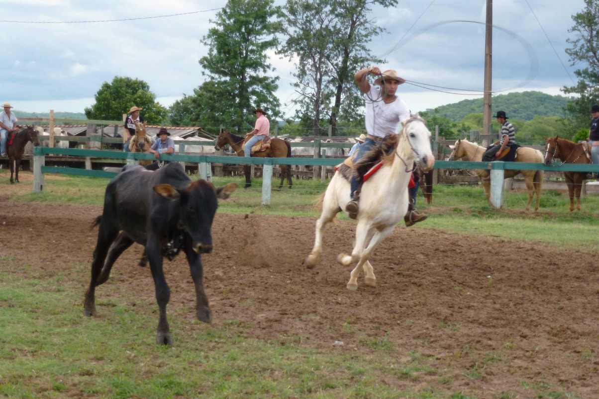 Finden wieder einmal kein Wi-Fi, das funktioniert! Kaufen ein paar T-Shirt. Hier ist alles auf Eco eingerichtet. Die Verpackung ist ein Baumwollbeutel oder Orangen-Netzli. Auf der Rückfahrt sehen wir eine Rodeo-Veranstaltung. Die Gauchos auf ihren Pferden versuchen mittels Lasso die Kühe einzufangen. Sogar eine Frau nimmt am Wettkampf teil.