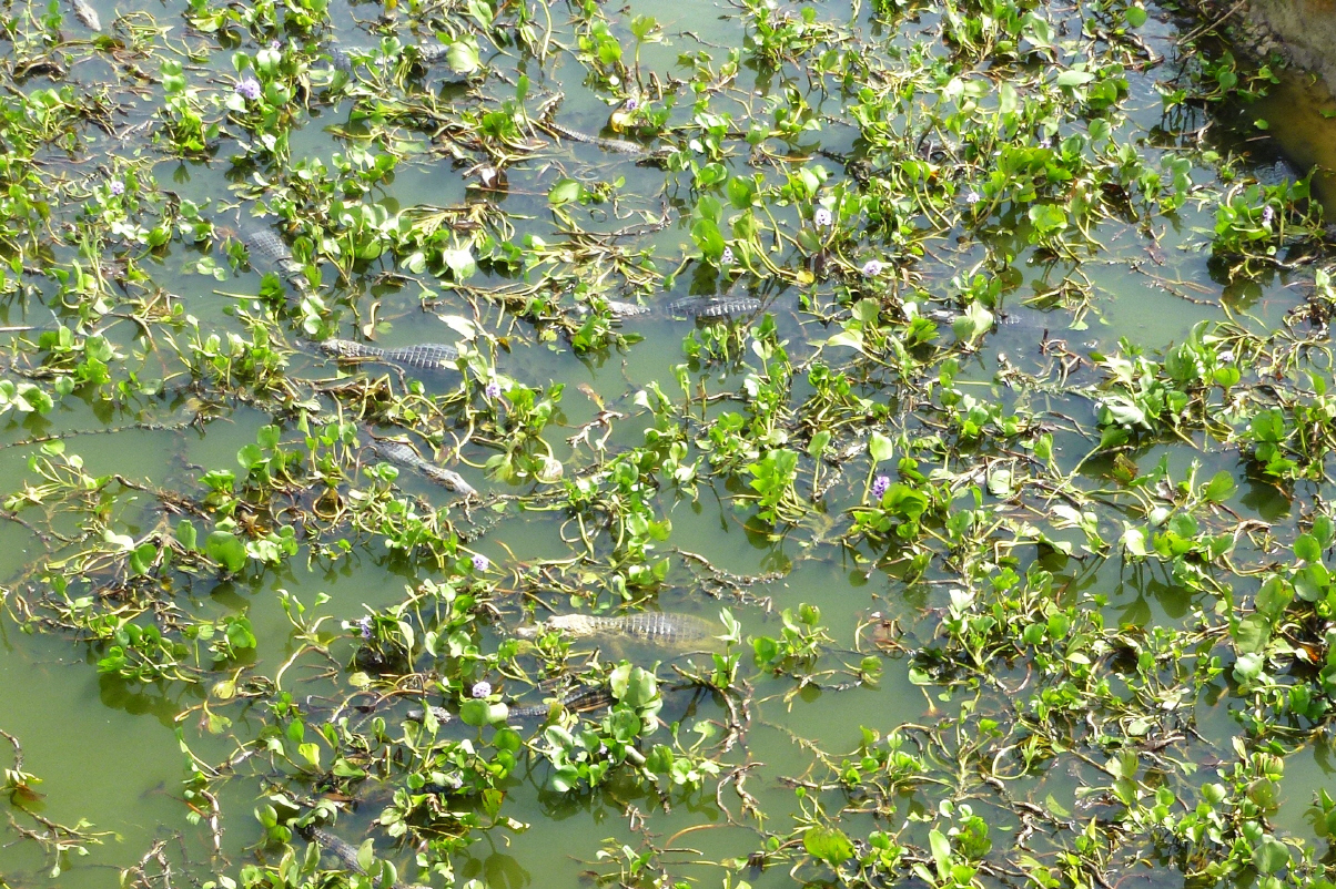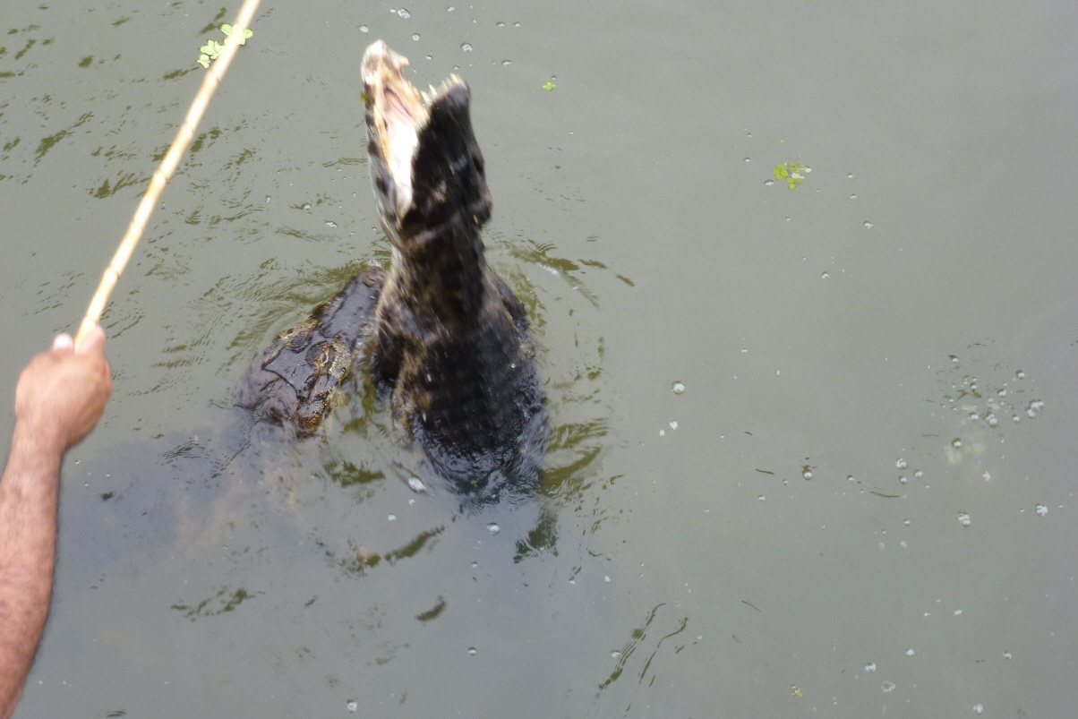 Haben gut geschlafen. Auf der Fahrt halten wir an einem Teich, wo sich 200 – 300 Krokodile tummeln. Hier müssen sie nur das riesige Maul aufsperren und sie können die vielen Fische fressen.