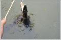 Krokodil Bigi gluschtets und isst zum Znüni frittierten Fisch. Nach ca. 60 km sollte man rechts ins Pantanal abbiegen. Fragen bei der Einfahrt, ob die Strasse heute befahrbar sei. Bis Kilometer 30 kann man fahren, dann ist Ende. Eine grosse Brücke ist weggeschwemmt.