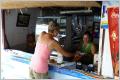 Auf der Rückfahrt sind die zwei Krokodile wieder beim Boot. Der Guide zeukelt sie mit Piranhas. Prompt springen die Krokodile für den gratis Happen. Nachher bekommen wir noch heisse Piranhas-Suppe und frischen Mangosaft. Nochmals ein Schwumm im Pool und weiter geht’s Richtung Corumba. Bei der Polizeistation erfragen wir den Strassenzustand für morgen ins Pantanal. Ein heftiges Gewitter ist im Anmarsch und so übernachten wir gleich hier. War eine gute Entscheidung. Geniessen den kühlen Wind, der durch den MAN blässt.