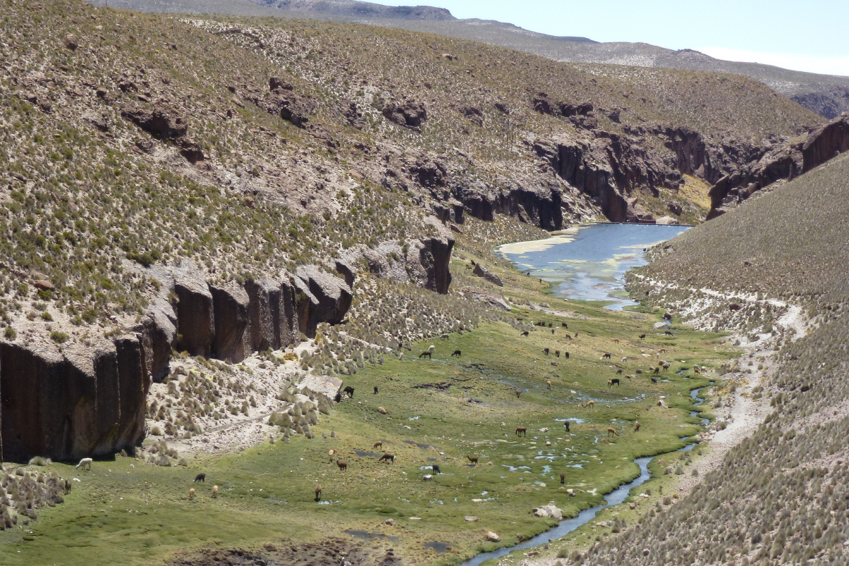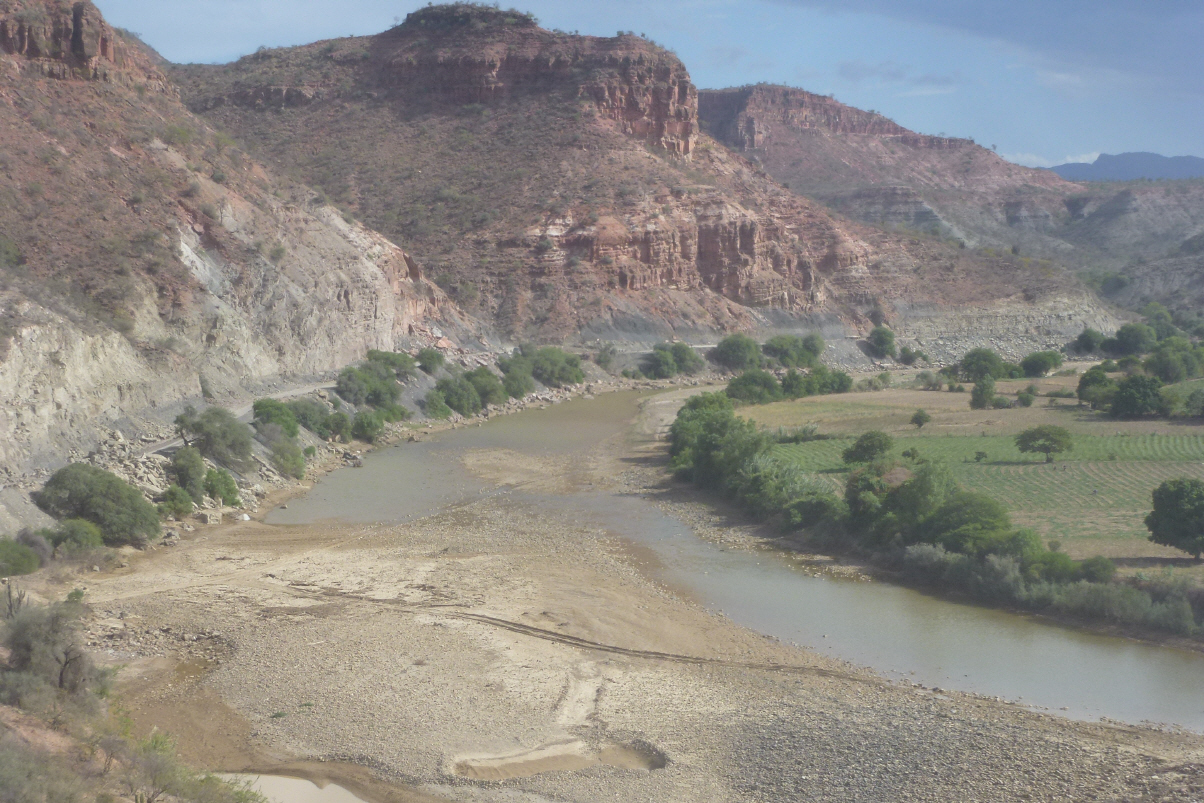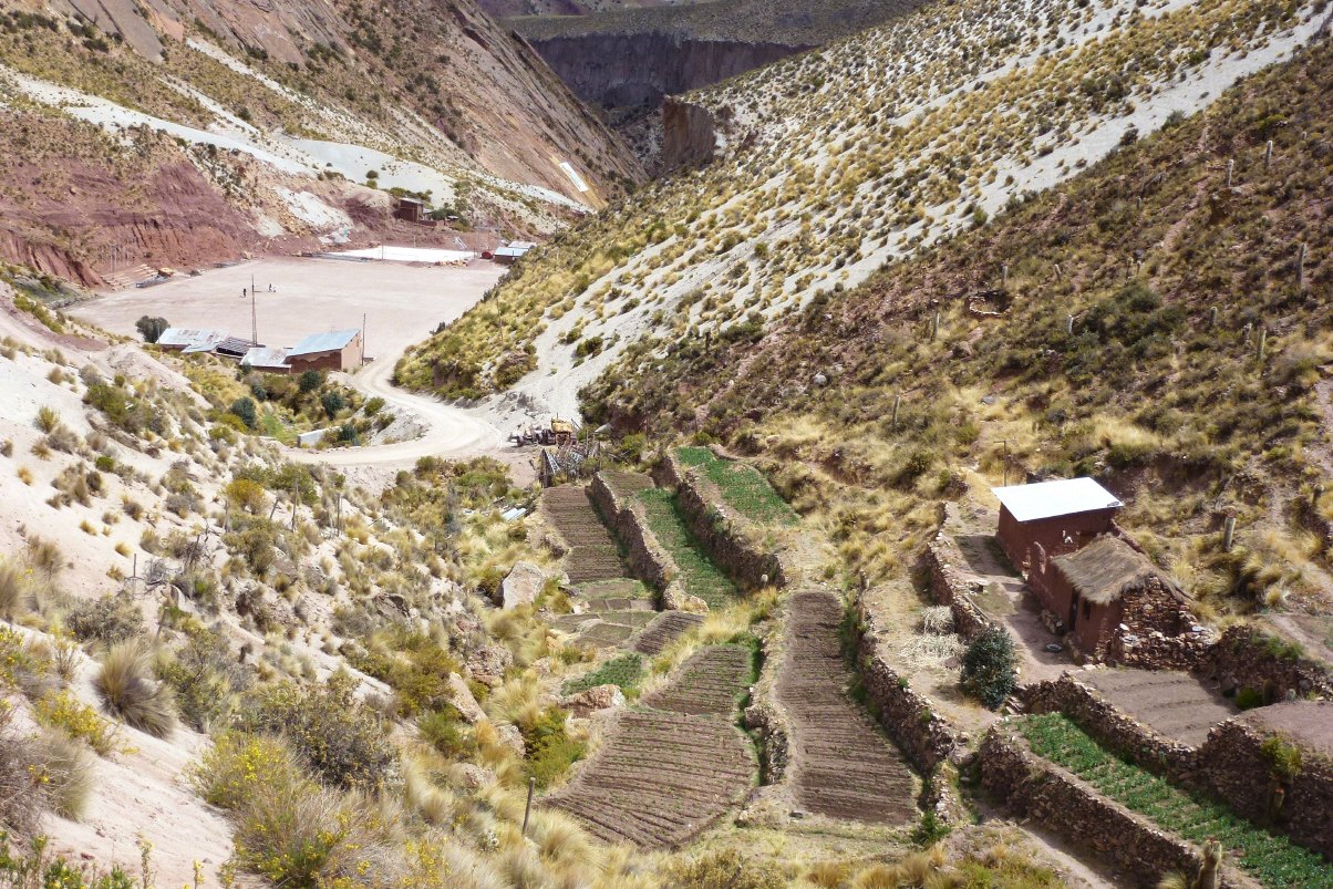 Eine stabile, verschlossene Schranke versperrt uns die Weiterfahrt. Eine Umfahrung derselben ist unmöglich. Bigi hupt wie verrück! Aus einem Haus unterhalb taucht ein Bolivianer auf und öffnet für uns die Schranke. Natürlich ist uns dies ein Trinkgeld von 10 Bolivianos und drei frischen Brote wert. Für Antonio ist es vermutlich wie Weihnachten. In langen Kanälen fliesst das Wasser zu kleinen Kraftwerken. Es führen auch kleine Bewässerungskanäle zu den Dörfern und Feldern. In einem Dorf ruft uns eine Frau den Schimpfnamen ‚Gringos‘ nach.