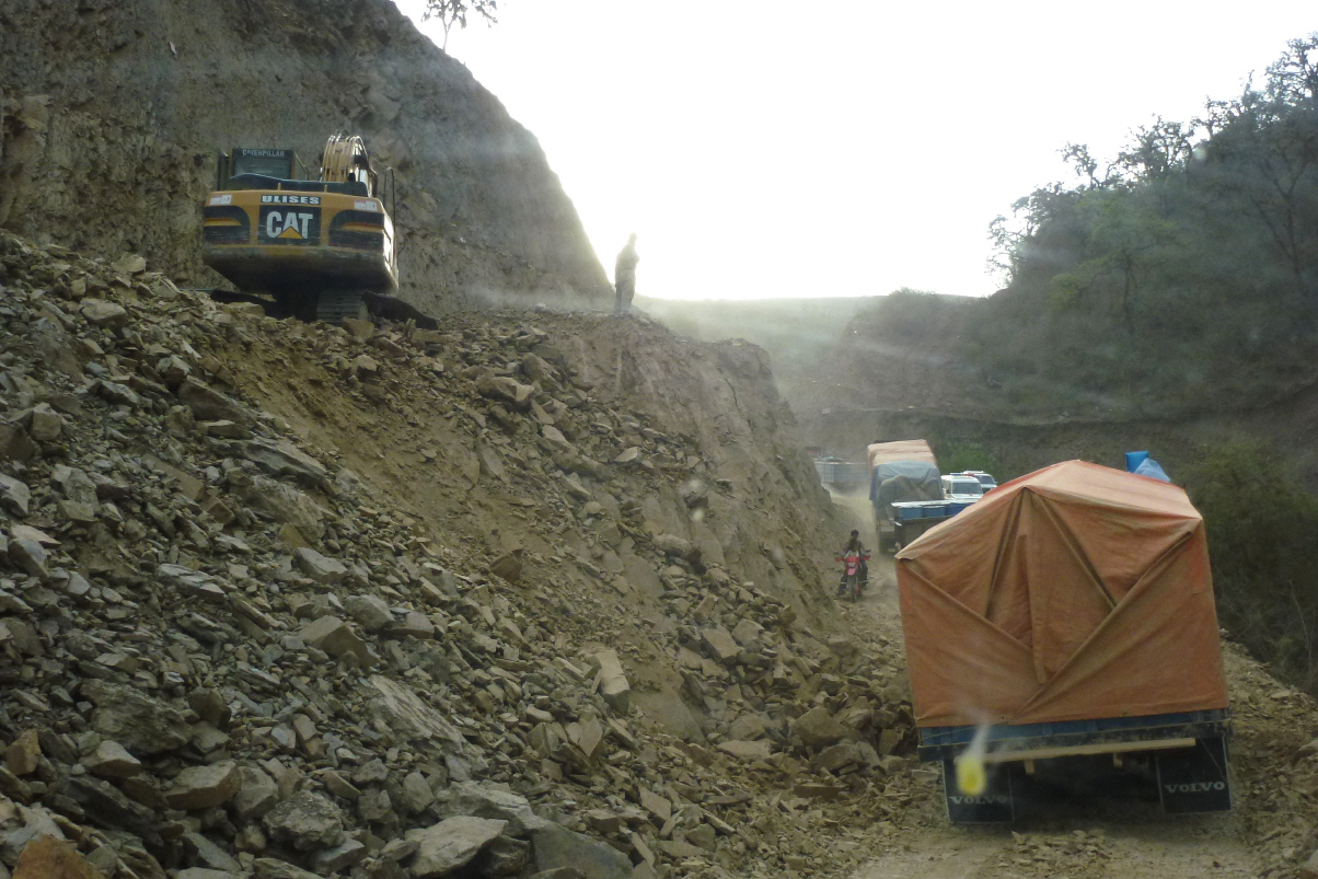 Um 4 Uhr morgens kommen vier Männer und setzen sich direkt vor unserem MAN auf die Bank, schwatzen und lachen. Es war gar nicht so eine ruhige Nacht. Bereits um 8 Uhr sind wir auf der Bolivan 4. Die ersten 70 km auf Asphalt und wir glauben es nicht, wir finden auch hier die Abzweigung der Hauptverbindungsstrasse 5 nach Sucre nicht. Es gibt keine Wegweiser in Bolivien! Wir haben zwei Strassenkarten, die aber nicht identisch sind. Bei einer Polizeistation fragen wir nach dem Weg und müssen natürlich wieder 20 km zurück. Nun finden wir die Abzweigung, eine bessere Sandpiste und ein Markstein Routa 5. Erdpiste, Gravelroad, also Luft aus den Reifen. Dann geht’s los, holper, holper, Löcher, Löcher. Schneller als 30 – 40 km/h geht es am Anfang nicht. Es kommt eine Strecke, da ist 20 km/h das Höchste aller Gefühle. An der Strasse wird gebaut. Die Brücken sind fast alle fertig.