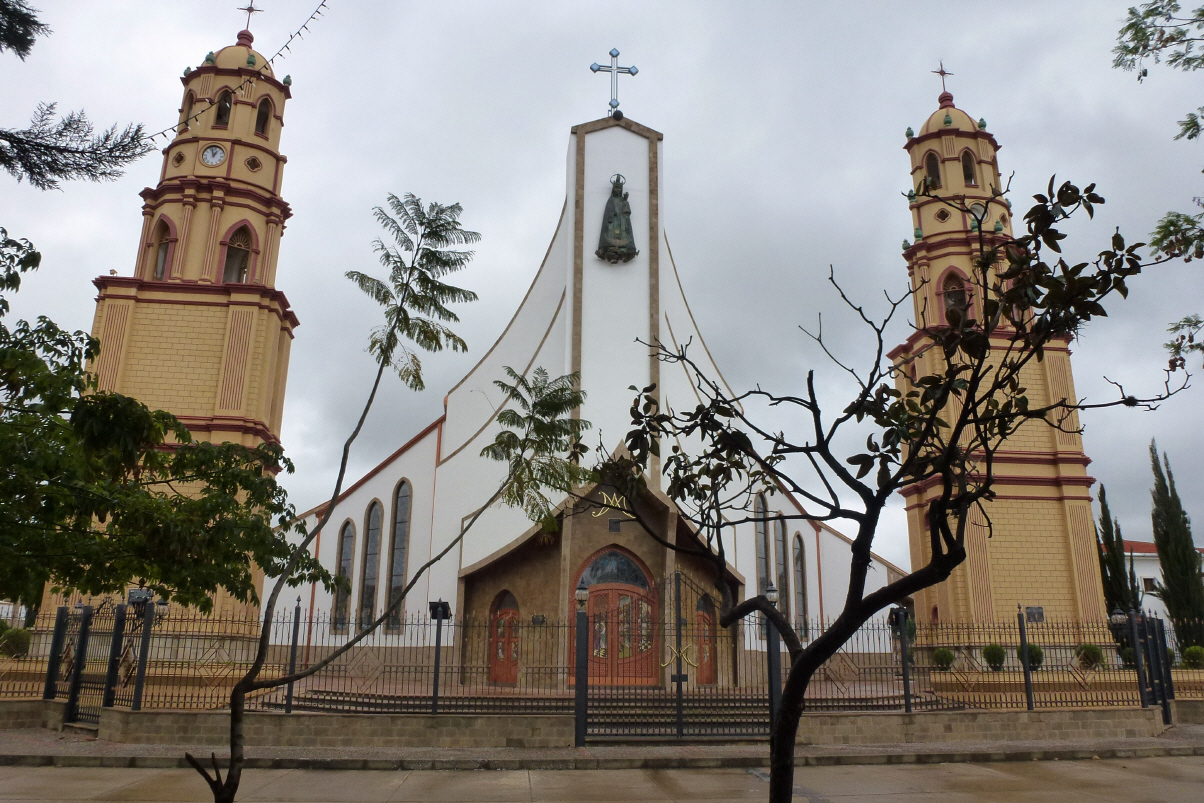 In der Nacht hat es geregnet. Es ist kühl, aber nicht kalt. Die Strasse ist pflotschig und zum Teil sehr rutschig. Fahren sehr vorsichtig über einen Pass und danach wird die Strasse ein wenig besser. In Aiquile, einer kleinen Stadt machen wir Pause. Hier ist eine schöne, moderne Kathedrale zu bewundern. Weiter Richtung Sucre auf 2740 m.ü.M.!