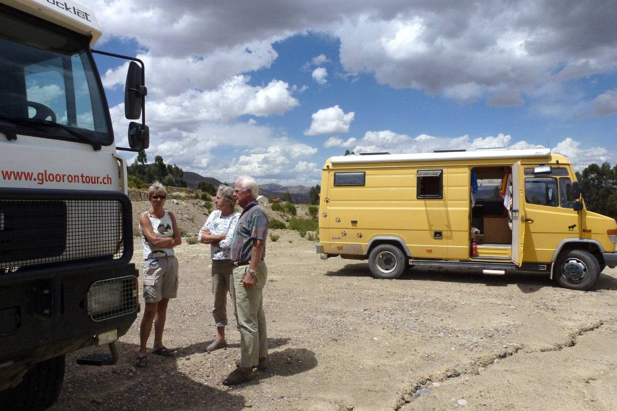 Und prompt nach der nächsten Kurve steht der gelbe Mercedes von Monika und Wolfgang, welche wir schon an den verrücktesten Ort in Südamerika getroffen haben. Letztmals in Uruguay am 6. Oktober. Schwatzen und tauschen Tipps aus. Sie fahren nach Sucre und wir nach Uyuni. Werden sie vermutlich in ein paar Tagen wieder in ‚La Paz‘ im Camping Oberwald treffen.