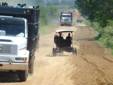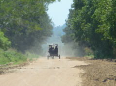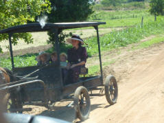 Über schlechteste Piste Richtung ‚San Raphael‘. Bei Kilometer 45 rechts weg in die Mennoniten Siedlung. Alles wirkt aufgeräumt. Sehen die Leute mit ihren kleinen Wagen mit Pferd. Sprechen einen jungen Mann mit einer klapprigen Sämaschine an. Das Gespräch ist jedoch einseitig und er will nichts verstehen. Er ist froh, dass wir ihn ziehen lassen. Die Mennoniten sind ein spezielles Völklein. Die Gemeinschaft lebt zurück gezogen. Hier sollen etwa 5000 Leben. Alles Männliche in schwarzen Latzhosen, Langarmhemd und Strohhut, alles Weibliche mit schwarzem Rock, weisser Masche und Strohhut. Die Pille kennen sie nicht, so sind sie sehr fruchtbar, bis 16 Kinder. Die Kinder gehen 6 Jahre zur Schule. Dort lernen sie lesen, schreiben, rechnen und alles über die Bibel. Mit 12 Jahren gelten sie als erwachsen.